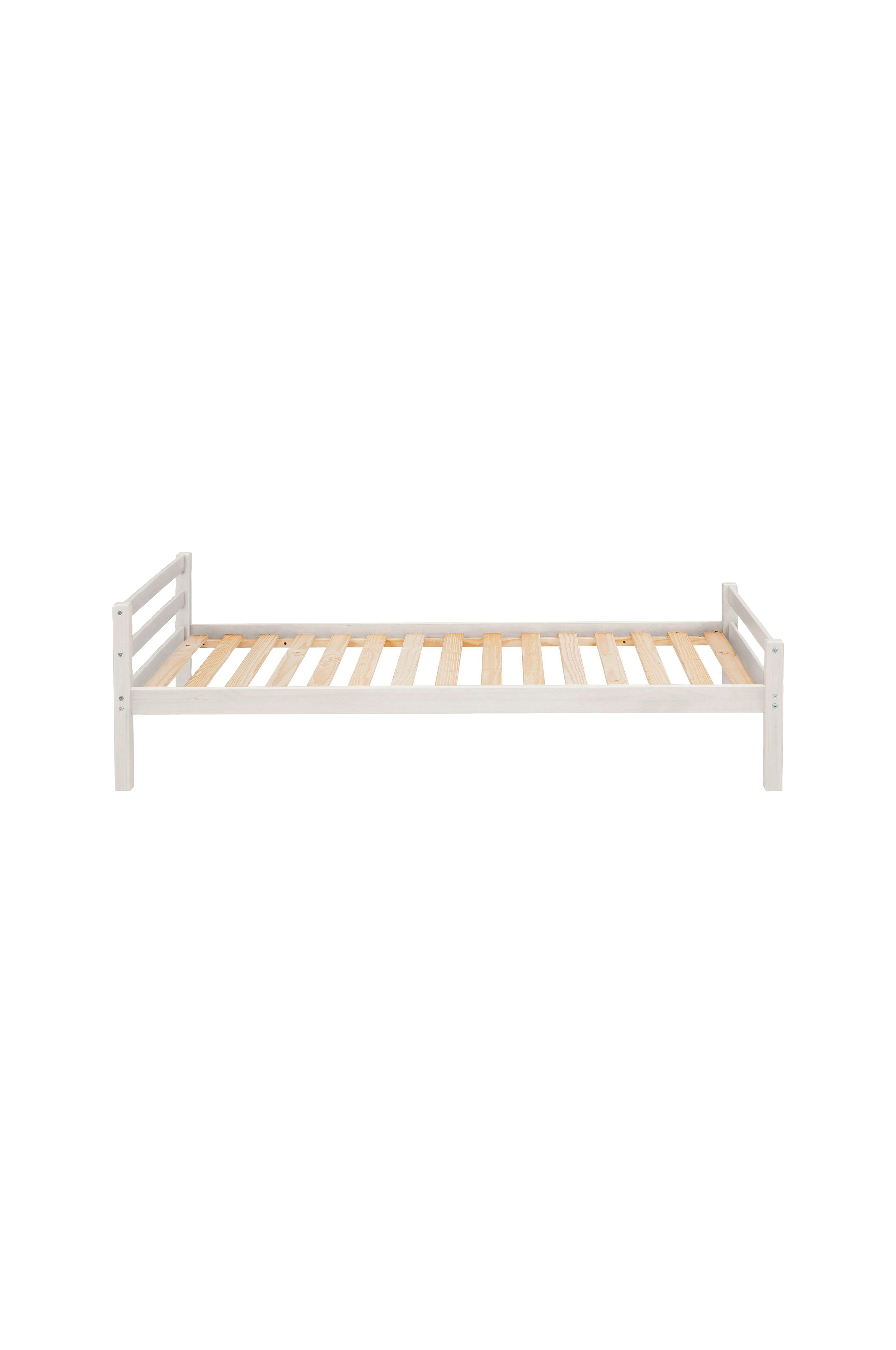 Tidlös sovutrustning för barn- eller tonårsrummet: dagbädd med spjälram. Denna säng imponerar med sin trendorienterade design och högkvalitativa utförande. Dagbädden är tillverkad av massivt furuträ. Den matta, lättskötta ytan är snabb och enkel att rengöra. En högkvalitativ spjälram ingår redan i leveransen, så att du omedelbart kan utrusta sängen med en madrass. Ett smakfullt blickfång i ditt hem: dagbädden inklusive spjälram.