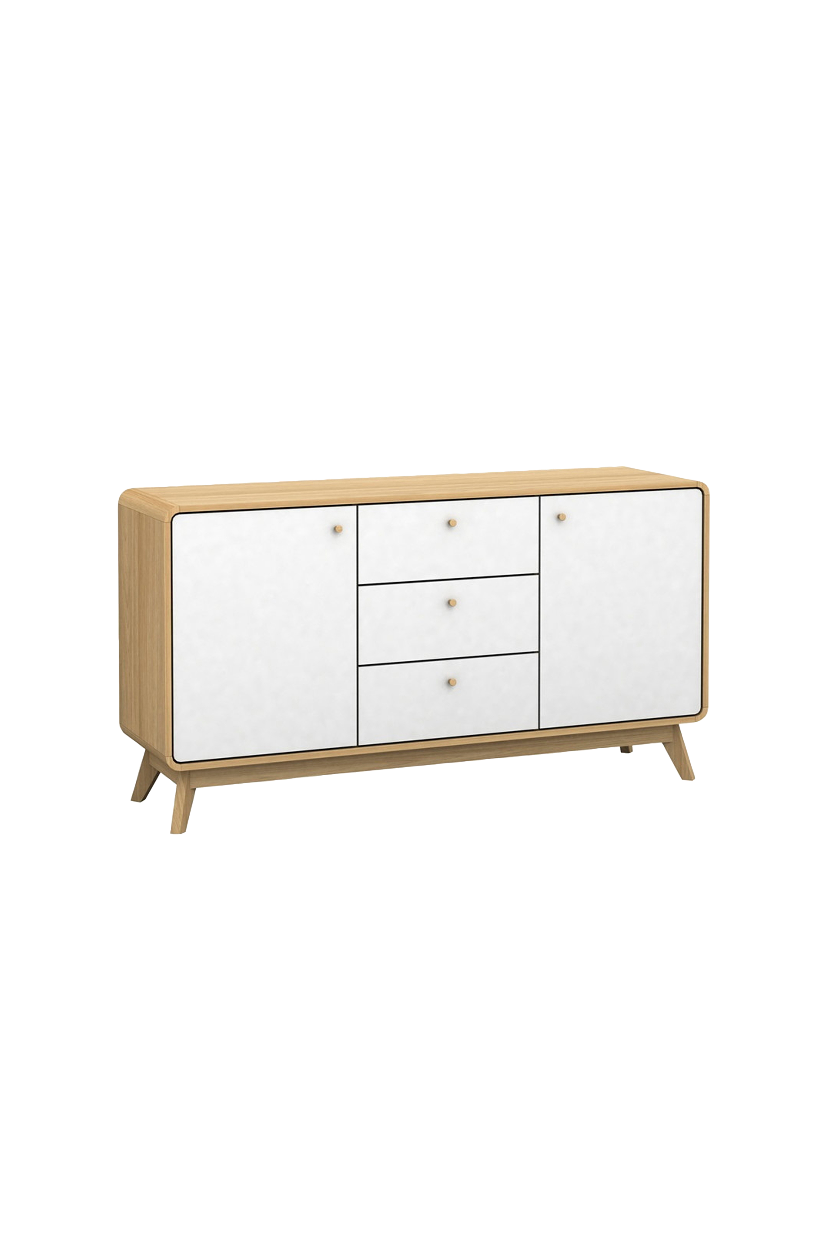 cassie sideboard är en modern och elegant möbel som kommer att lysa upp ditt utrymme. Den vita stommen är tillverkad av mdf, ett hållbart material som är lätt att rengöra. De ekfärgade benen ger skänken en touch av naturlig charm och stabilitet. Den har två dörrar och tre lådor, vilket ger gott om plats för dina föremål. cassie sideboard är perfekt för vardagsrummet, sovrummet eller hallen. Den har måtten 140 x 39 x 75,2 cm och väger 44 kg.