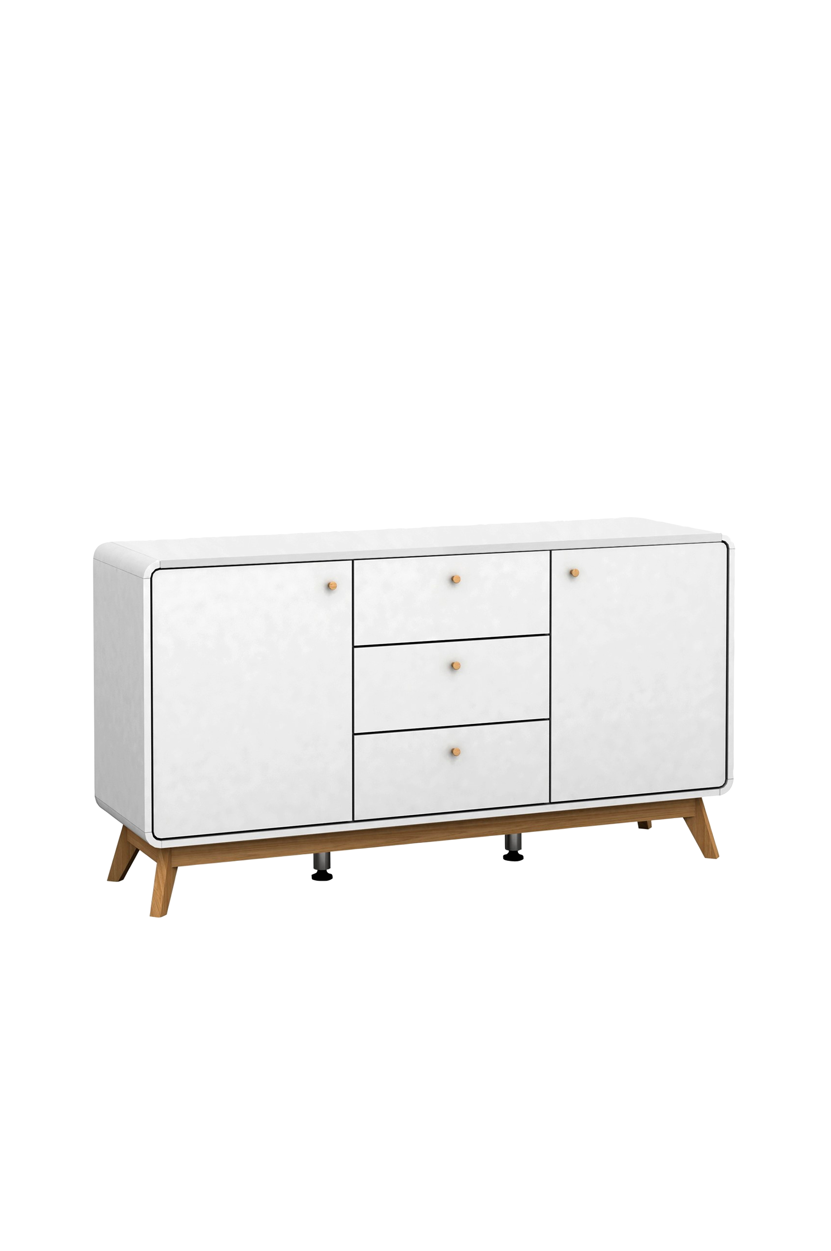 cassie sideboard är en modern och elegant möbel som kommer att lysa upp ditt utrymme. Den vita stommen är tillverkad av mdf, ett hållbart material som är lätt att rengöra. De ekfärgade benen ger skänken en touch av naturlig charm och stabilitet. Den har två dörrar och tre lådor, vilket ger gott om plats för dina föremål. cassie sideboard är perfekt för vardagsrummet, sovrummet eller hallen. Den har måtten 140 x 39 x 75,2 cm och väger 44 kg.