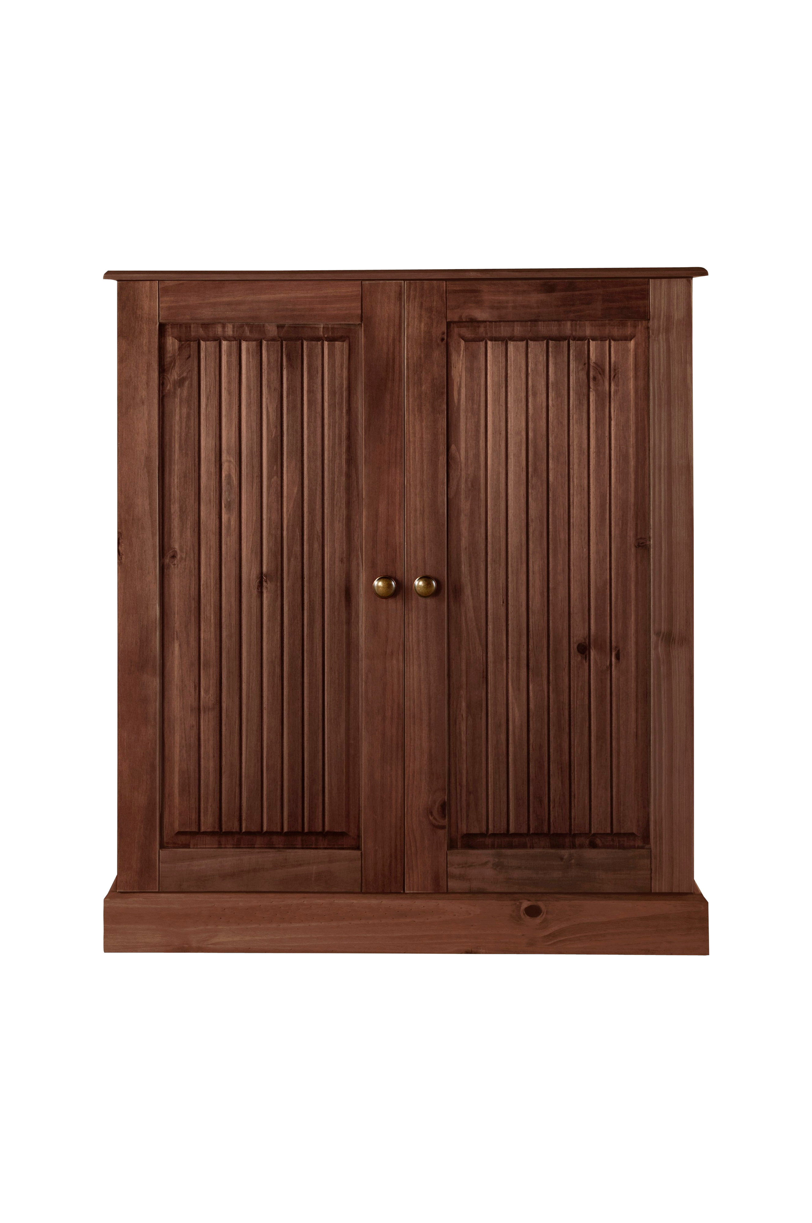 Platsbesparande skåp. Funktionalitet och komfort står i fokus. De justerbara hyllplanen ger dig maximal flexibilitet. Det gör att du själv kan bestämma hur höga de enskilda facken ska vara. Vaxet på ytan gör träet mindre känsligt för smuts och fukt. Järnhandtagen är stabila och slits därför inte ut så snabbt. Skåpet står på socklar. Detta innebär att möbeln är stabil och inte vinglar. Den maximala lastkapaciteten är 40 kg.