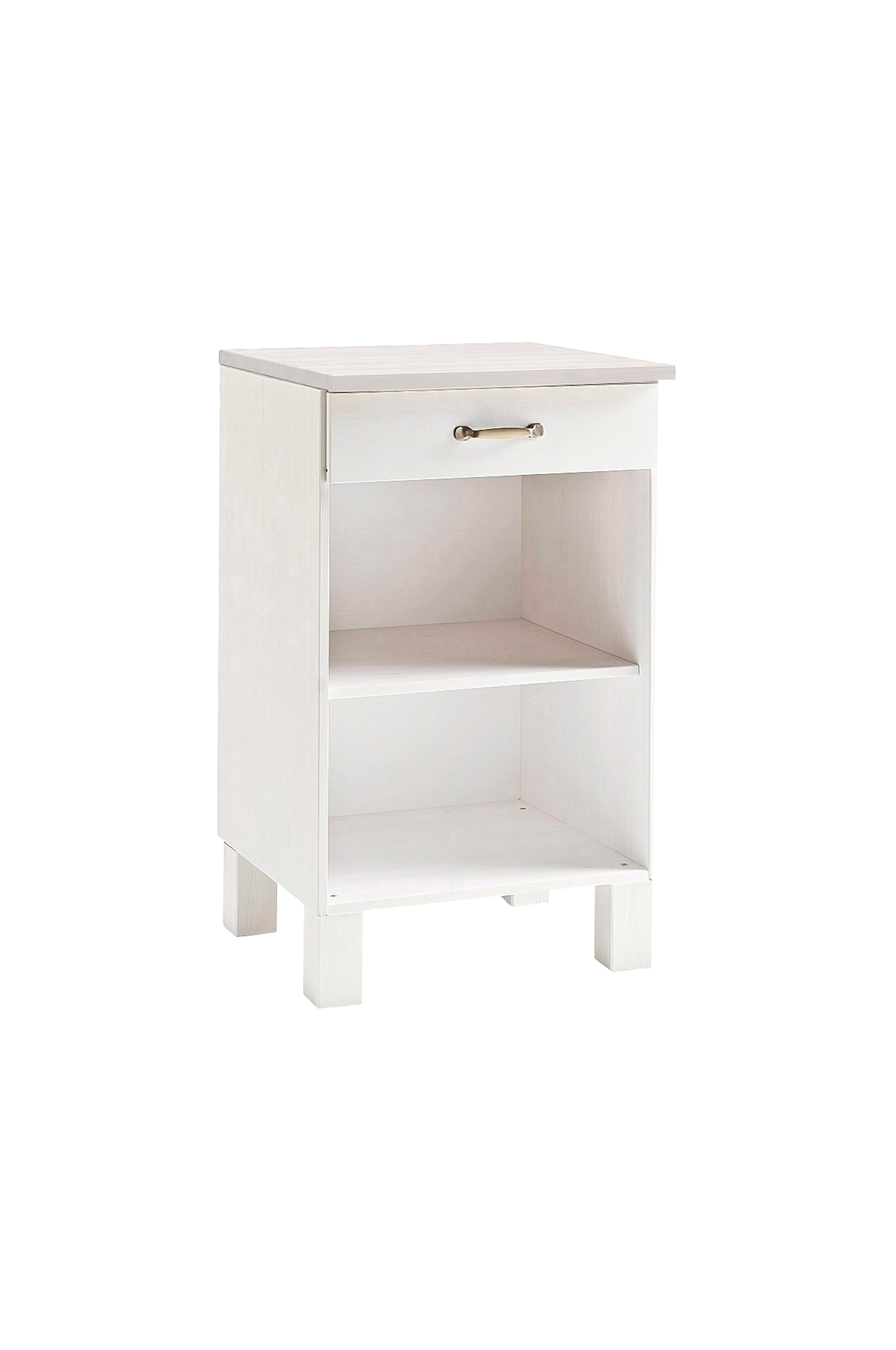 Ta med den mysiga lantliga stilen in i din hemmiljö med detta underskåp. Köksskåpet av fsc-certifierad massiv furu imponerar med sin vackra design i en modern, enkel variant av lantlig look. De tydliga linjerna och det subtila metallhandtaget understryker detta intryck. Facken erbjuder gott om förvaringsutrymme, medan lådan erbjuder plats för bestick eller småsaker. Skåpet finns i olika färgkombinationer och kan enkelt integreras i befintlig köksinredning. Upptäck fler produkter från denna köksserie.