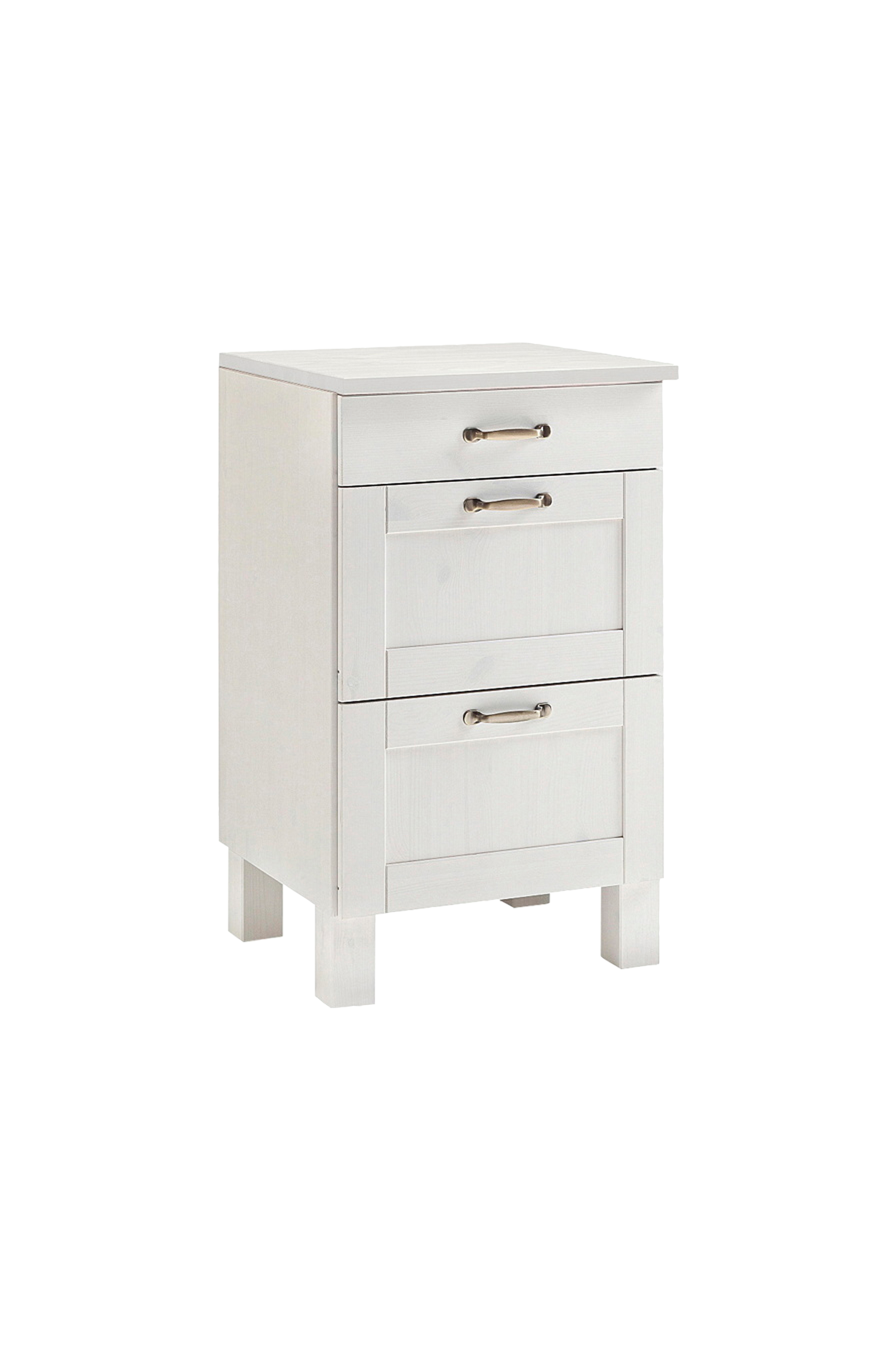 Modernt lantkök med högkvalitativt utförande: köksenheten imponerar med sitt attraktiva utseende och praktiska förvaringsutrymme. Den övre lådan är perfekt för bestick och andra köksredskap, medan de två rymligare lådorna kan rymma till exempel porslin eller mat. Skåpet och bänkskivan är tillverkade av fsc-certifierad, massiv furu och finns i olika, framgångsrika färgkombinationer. De värdefulla metallhandtagen avrundar den attraktiva designen på detta underskåp. Möblerna i denna köksserie kan kombineras individuellt, men förlorar inte sin dekorativa effekt även som en enda möbel. Underskåpet ger en mysig lantlig känsla och sätter hemtrevliga accenter.