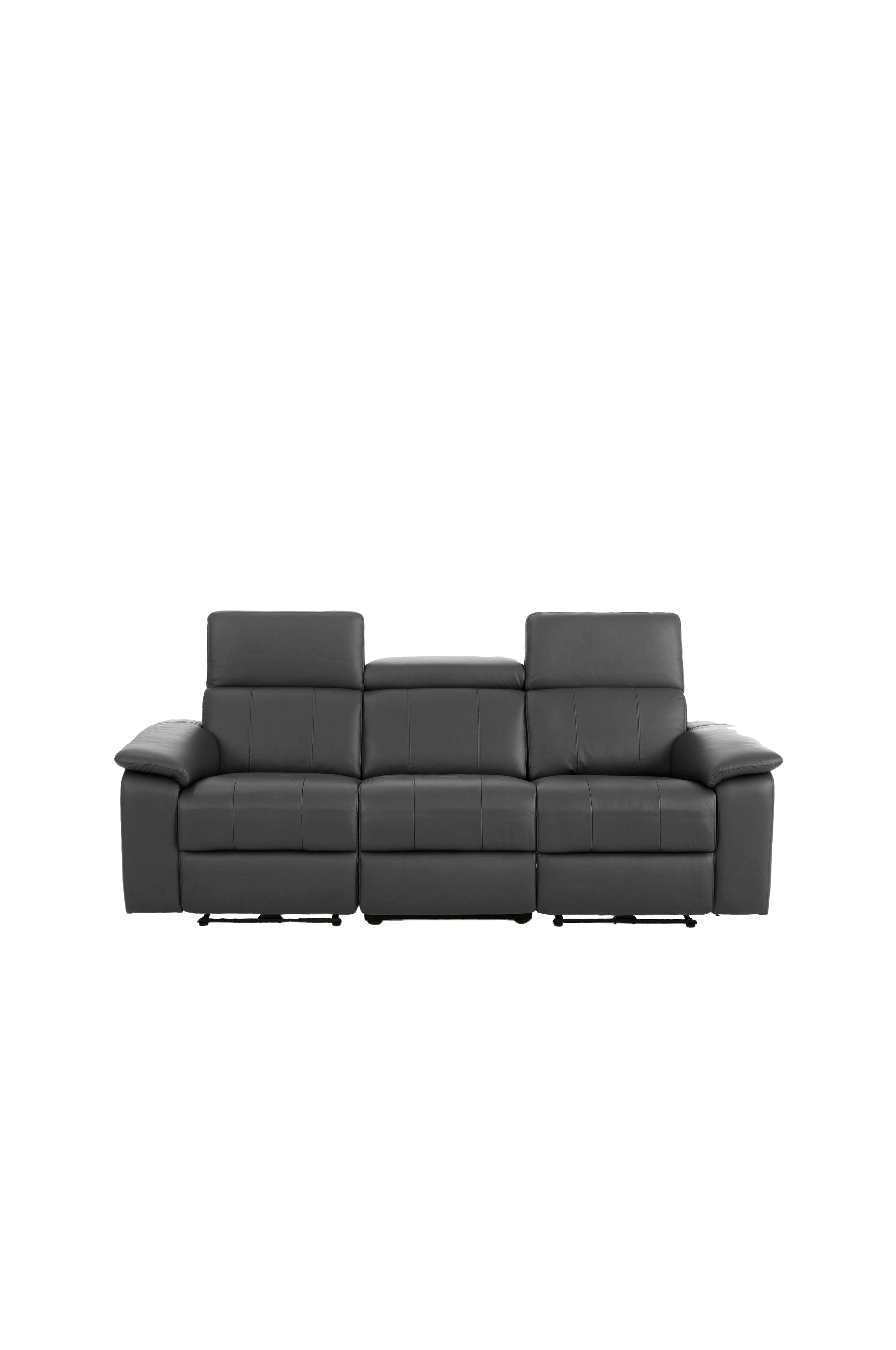 Soffan är en modern 3-sits med relaxfunktion. Den har justerbara nackstöd och en USB-port med motoriserad eller manuell version. Den passar till lantlig stil och andra boendekoncept.