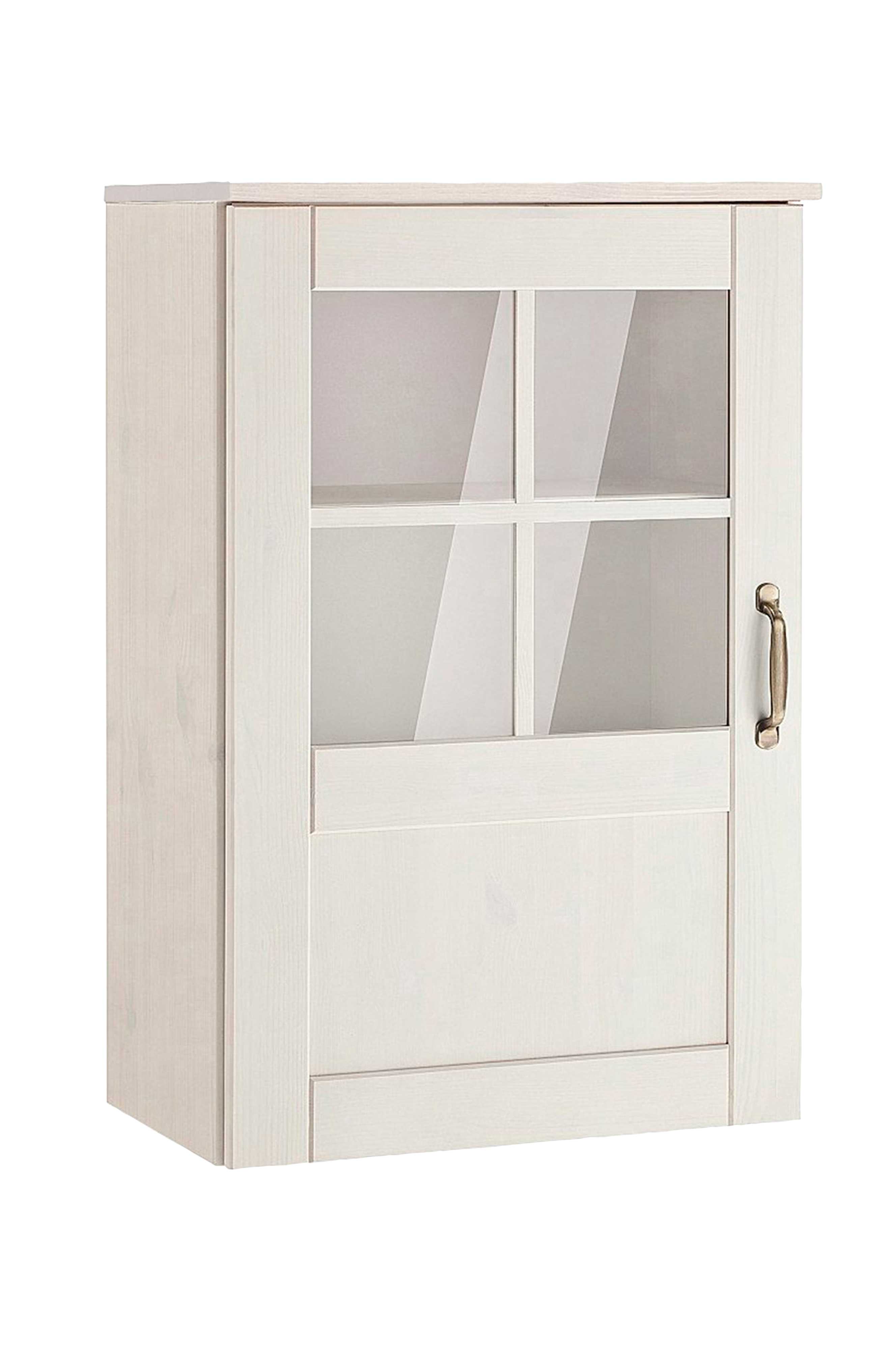 Detta väggskåp i lantlig stil imponerar som en attraktiv köksmöbel. Det kan enkelt kombineras med andra färger och inredningsstilar, liksom med andra möbler från samma kollektion. Kombinationen av glaselement, ett metallhandtag och material skapar en elegant helhet som passar in i nästan alla rumskoncept. Tack vare hyllorna finns det gott om förvaringsutrymme inuti för att förvara dina glasartiklar. Möbeln är tillverkad av fsc-certifierat trämaterial och finns i fler färgvarianter.