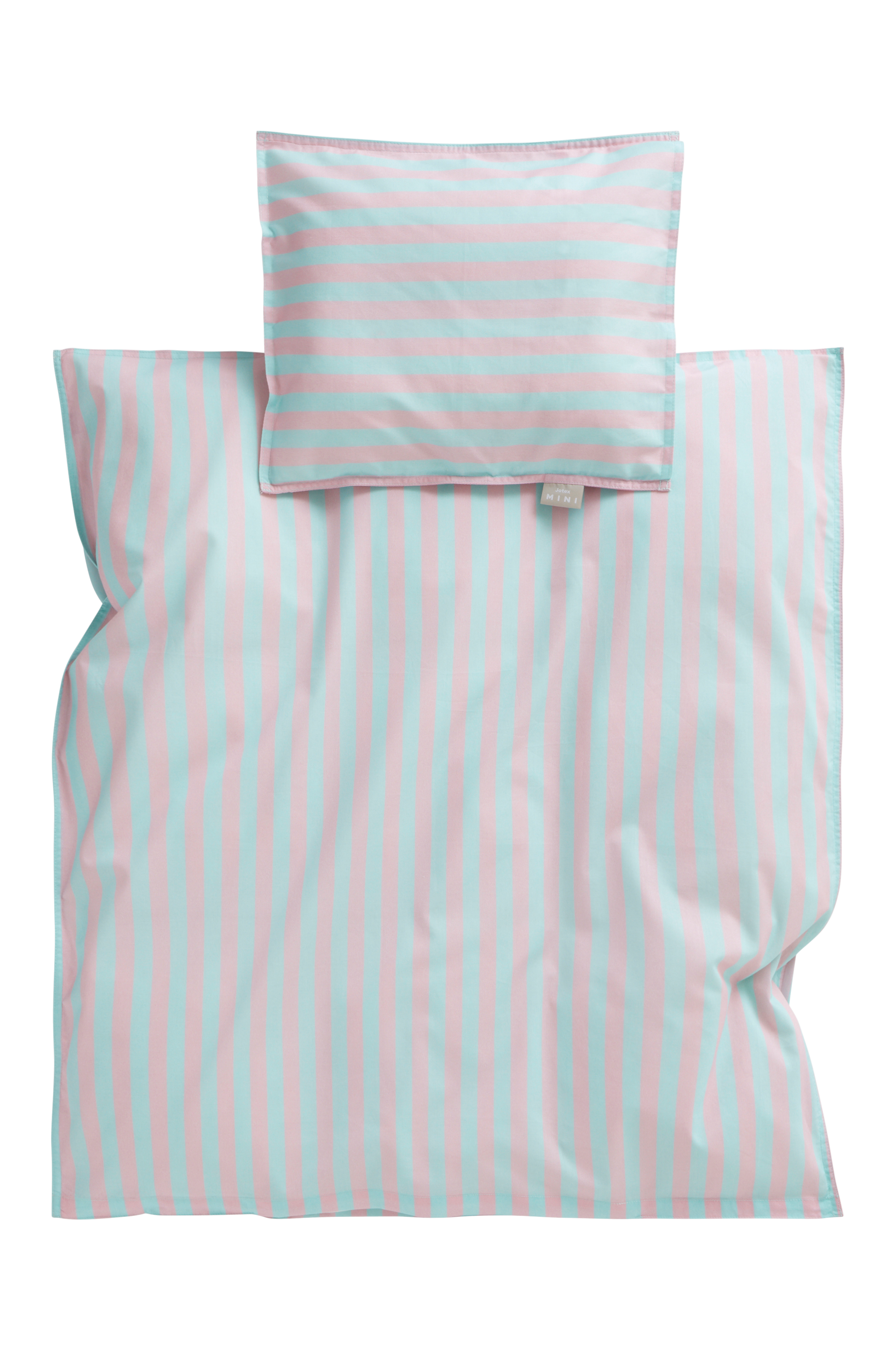 Randigt påslakanset i två delar med ett påslakan och ett örngott av ekologisk bomull. Påslakansetet passar till barnvagn och vagga. Sängkläderna i serien LOUSA är färgstarka och ränderna är digitaltryckta, vilket ger ett mjukare och mer distinkt tryck med klarare färgåtergivning. Ekologisk bomull är skönt att sova i, svalt och mjukt mot huden. Trådtäthet på 180 tc. (Trådtätheten talar om antalet trådar, thread counts, per kvadrattum i ett tyg. Ju högre trådtäthet desto högre kvalité. Med undantag för linne som ofta vävs glesare för att få den rätta känslan.)
