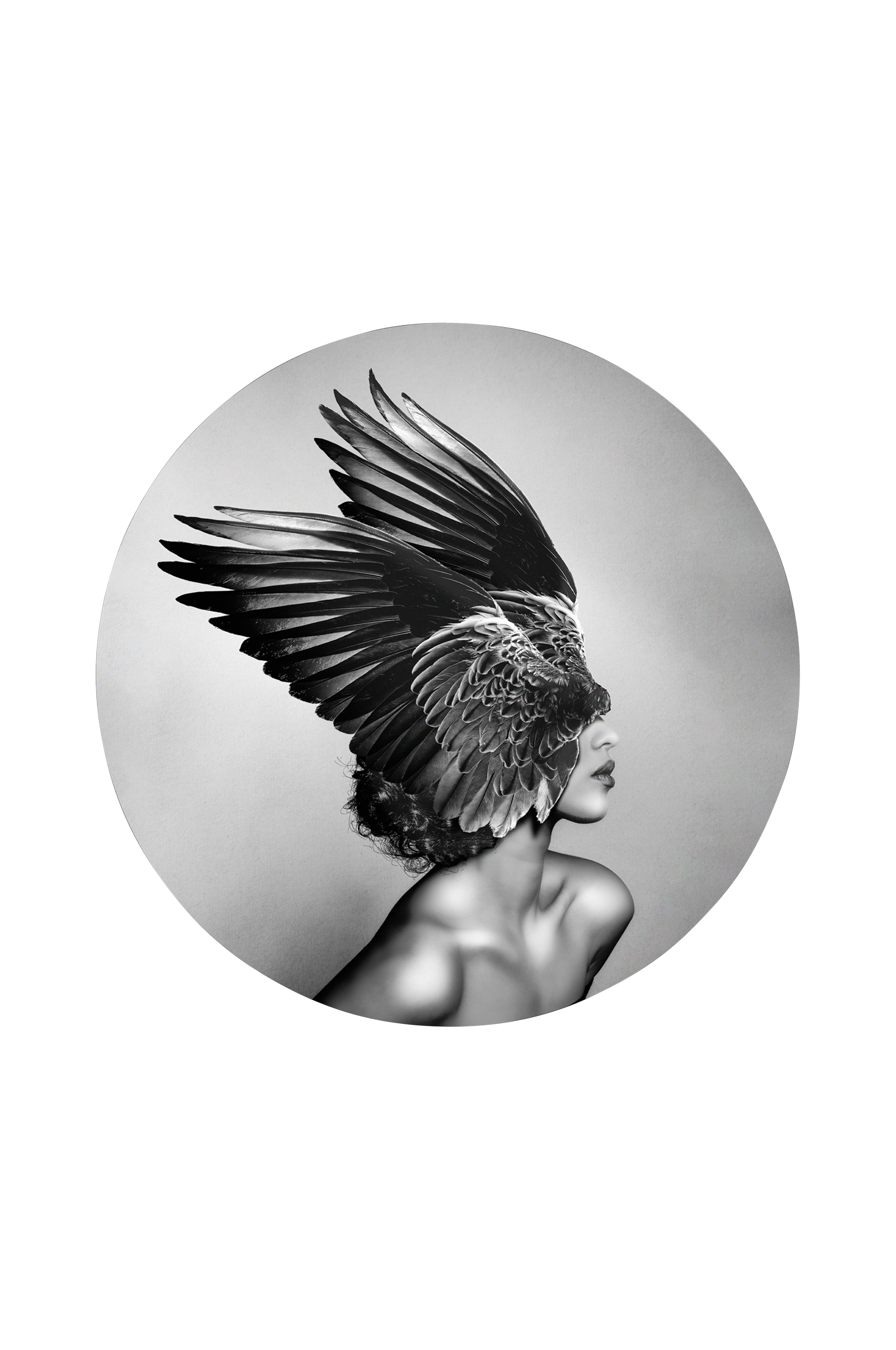 Tavla från Malerifabrikken. Tryck på rund MDF-platta. När tavlan är upphängd, gör profilen på plattan att fronten "svävar" ca 0,5 cm från väggen.
