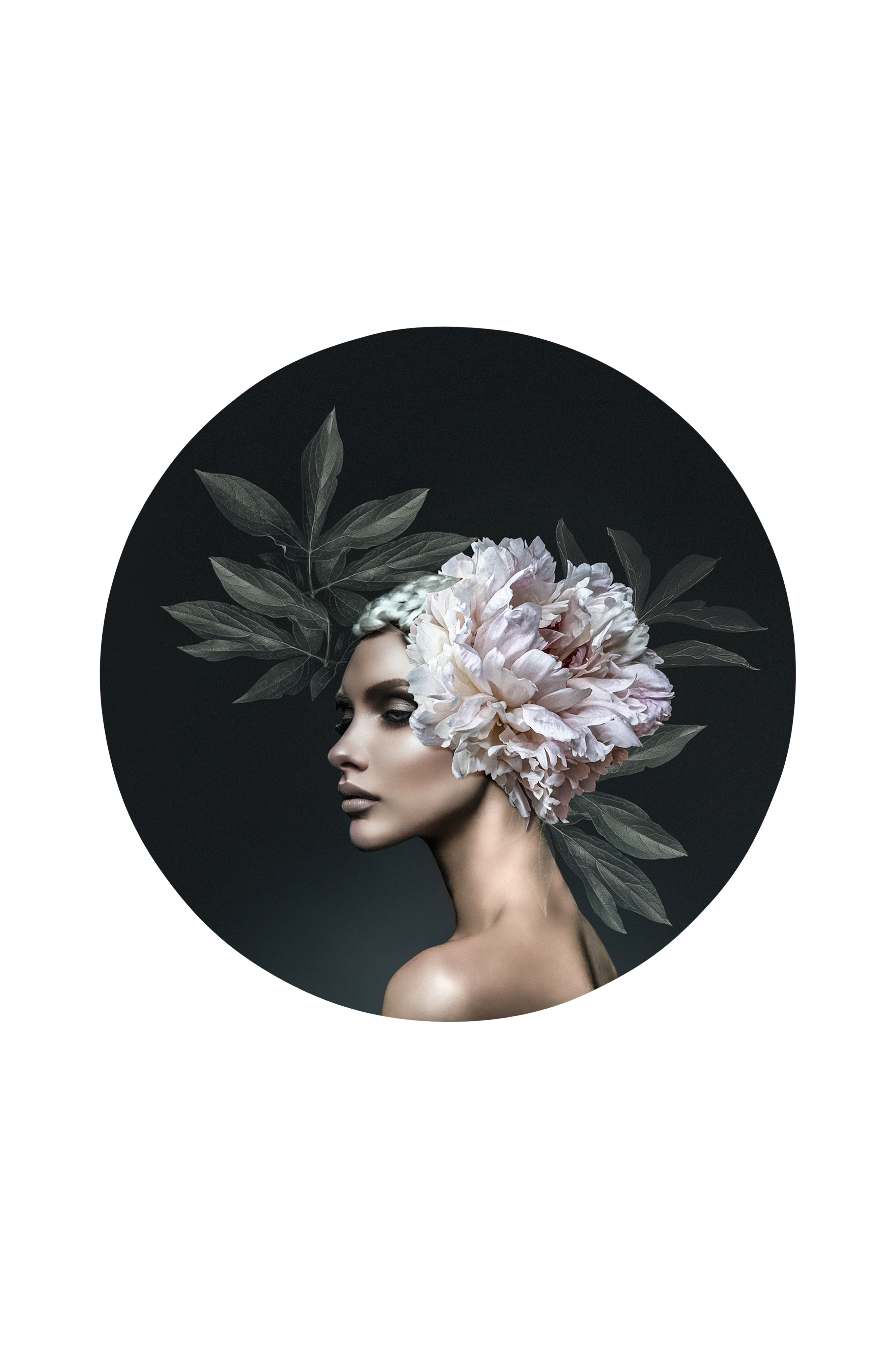 Tavla från Malerifabrikken. Tryck på rund MDF-platta. När tavlan är upphängd, gör profilen på plattan att fronten "svävar" ca 0,5 cm från väggen.