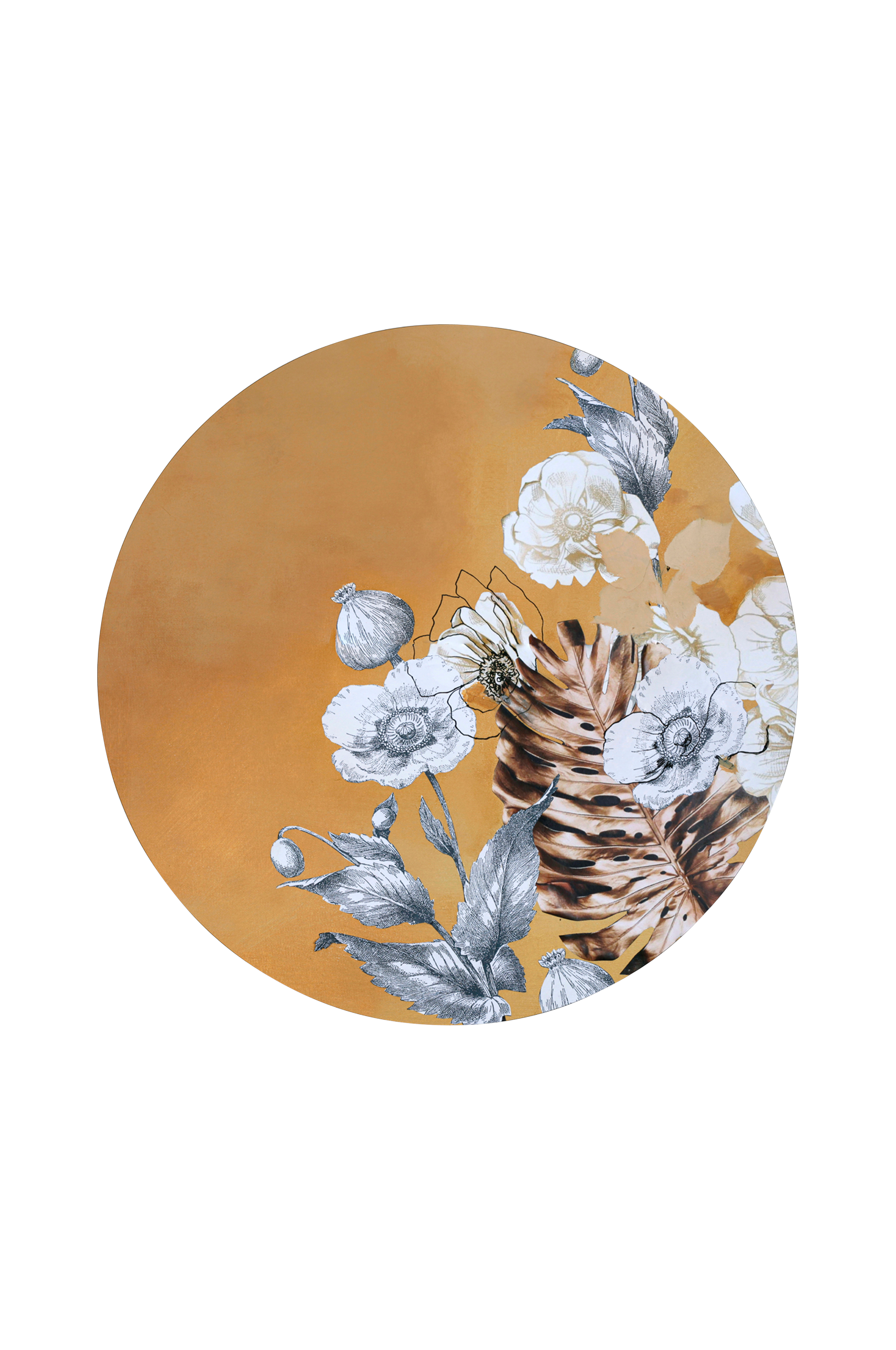 Tavla från Malerifabrikken. Tryck på rund MDF-platta. När tavlan är upphängd, gör profilen på plattan att fronten "svävar" ca 0,5 cm från väggen.