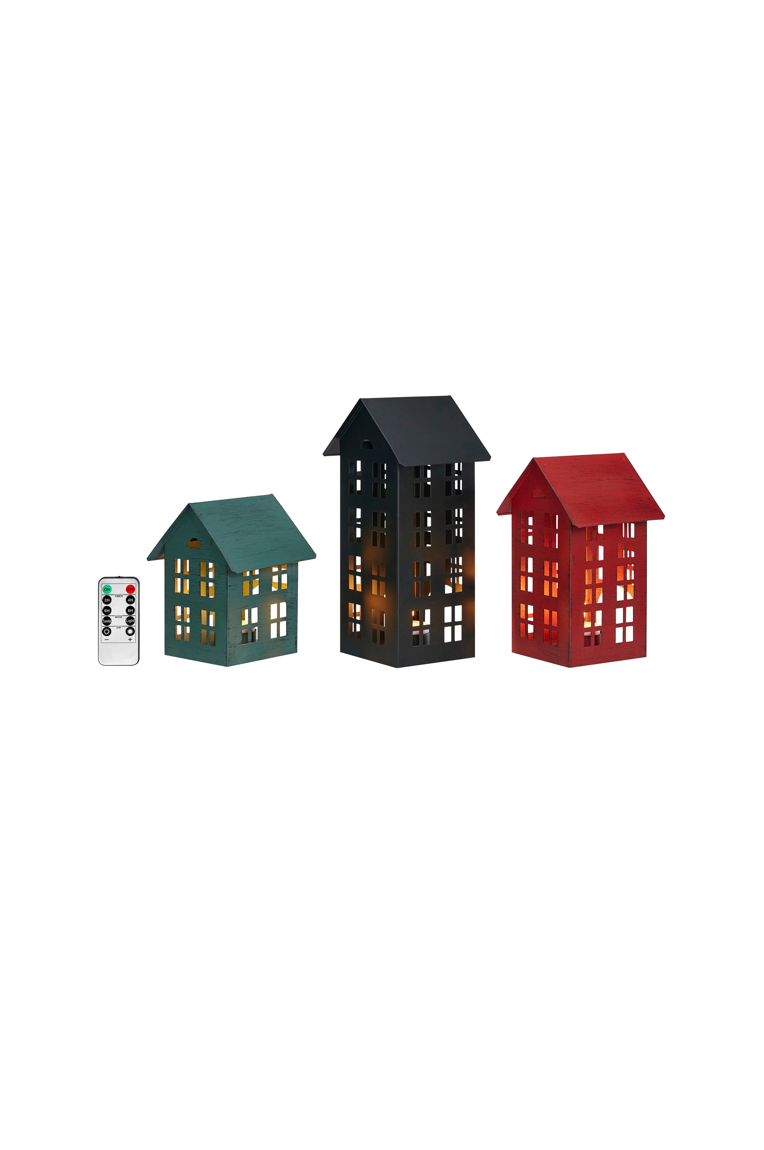 Norton bordsdekoration från markslöjd. Metallhus i förpackning om 3 st. 3 olika höjder. 16cm, 20cm och 26cm. Inklusive fjärrstyrda led-värmeljus i ett paket om 3. Uppladdningsbara värmeljus i plast. Timerfunktion på 2,4,6 och 8 timmar. Justerbar ljuseffekt, konstant eller flammande. Konstant ljus i 4 dimbara steg. 1 m usb-c-kabel ingår. Strömbrytare under varje ljus