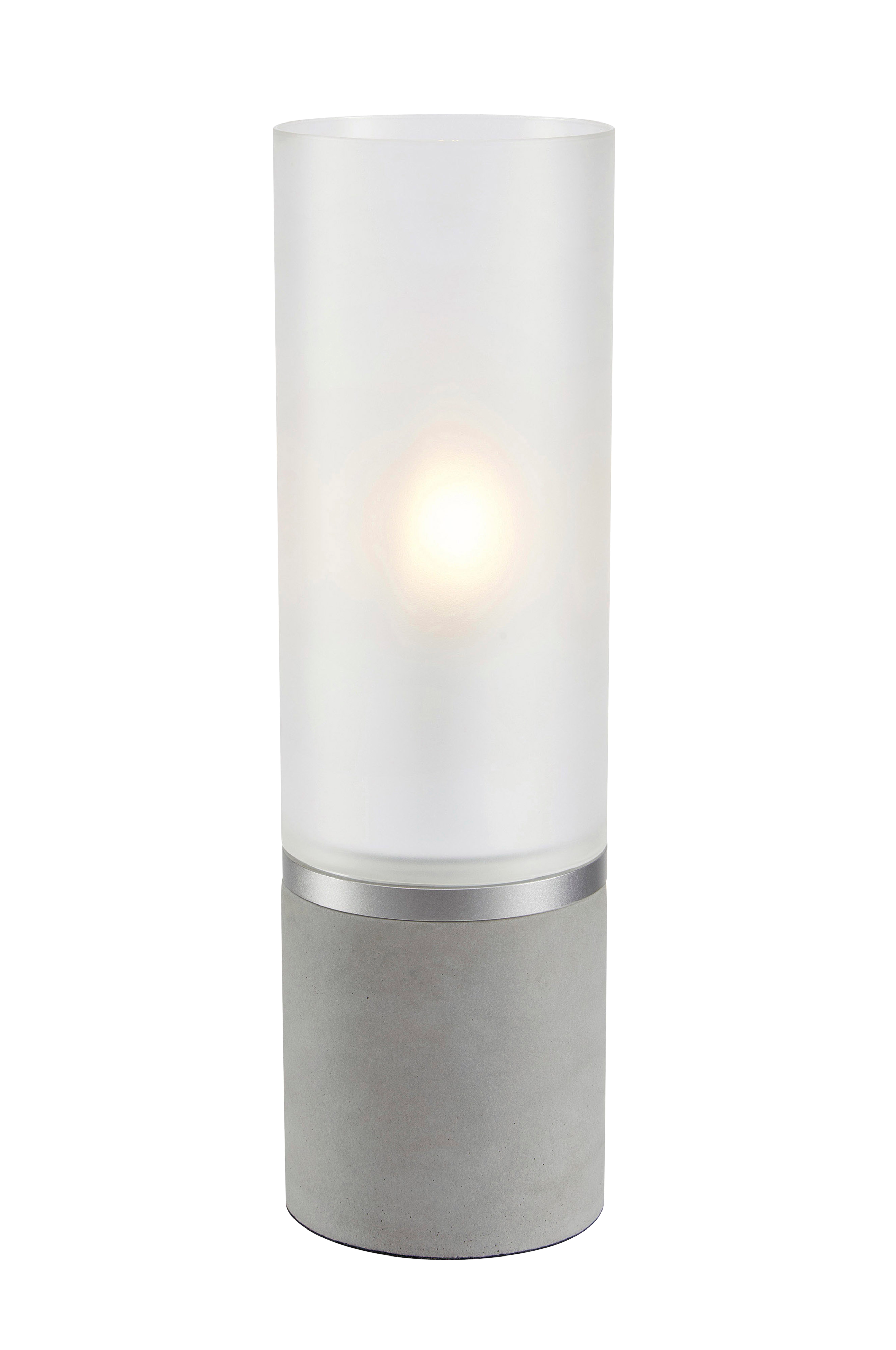 Molo bordslampa från markslöjd. Bas i cement och skärm i cylinderformat frostat glas. 2m svart textil kabel med brytare på sladden och väggkontakt. Höjd 40cm. 1xe27, max 40w. Ljuskälla ingår ej.