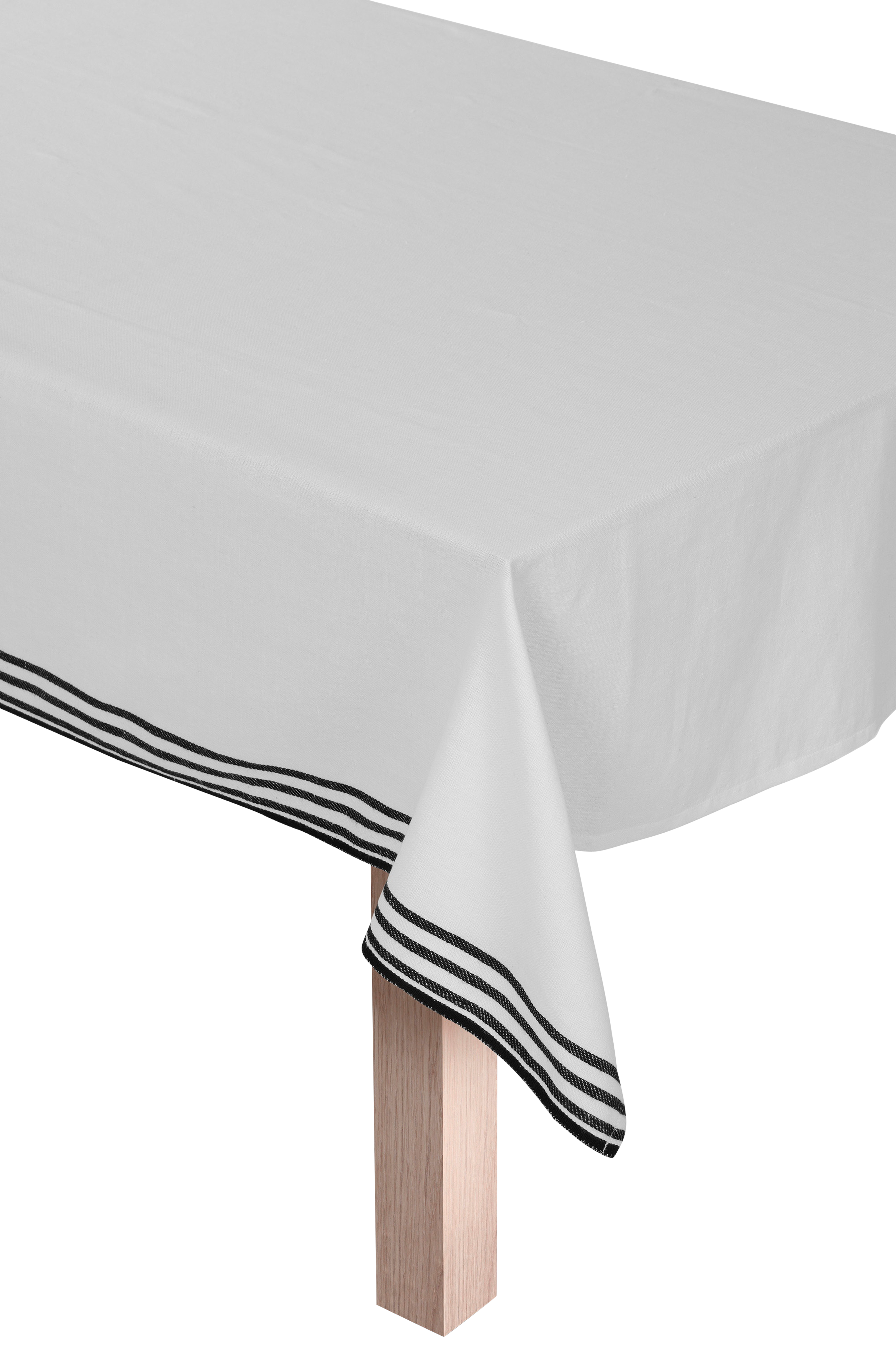 Stenhild bordsduk från markslöjd. Trendig duk med svarta ränder på långsidorna. 55% hampa och 45% bomull och oeko-tex 100 certifiering, vilket innebär att textilen är fri från skadliga kemikalier. Storlek 150x300cm. Tillverkad i indien. Kan tvättas i 40 grader. Designad av ann ringstrand. Kan kompletteras med matchande servetter stenhild.