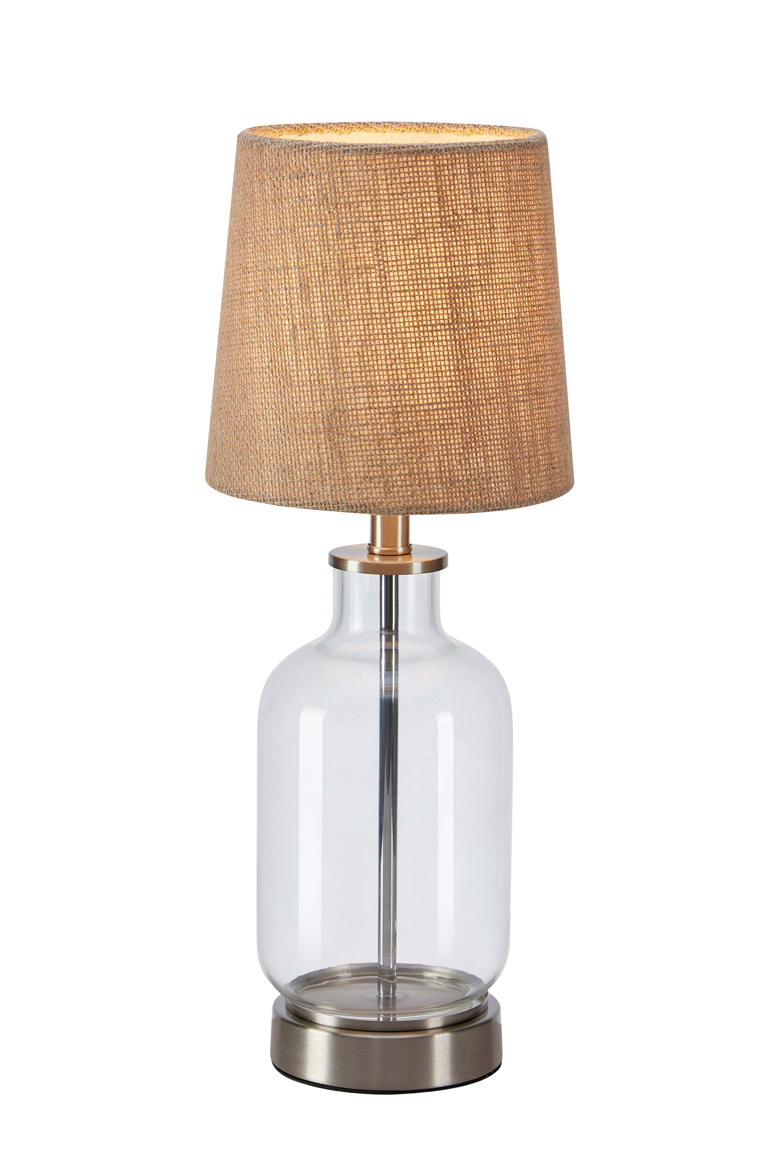 Costero bordslampa från markslöjd. Bas i glas och metall, skärm i jute. Höjd 43 cm. 2 m kabel med brytare på sladden och väggkontakt. 1xE14, max 40w. Ljuskälla ingår ej.