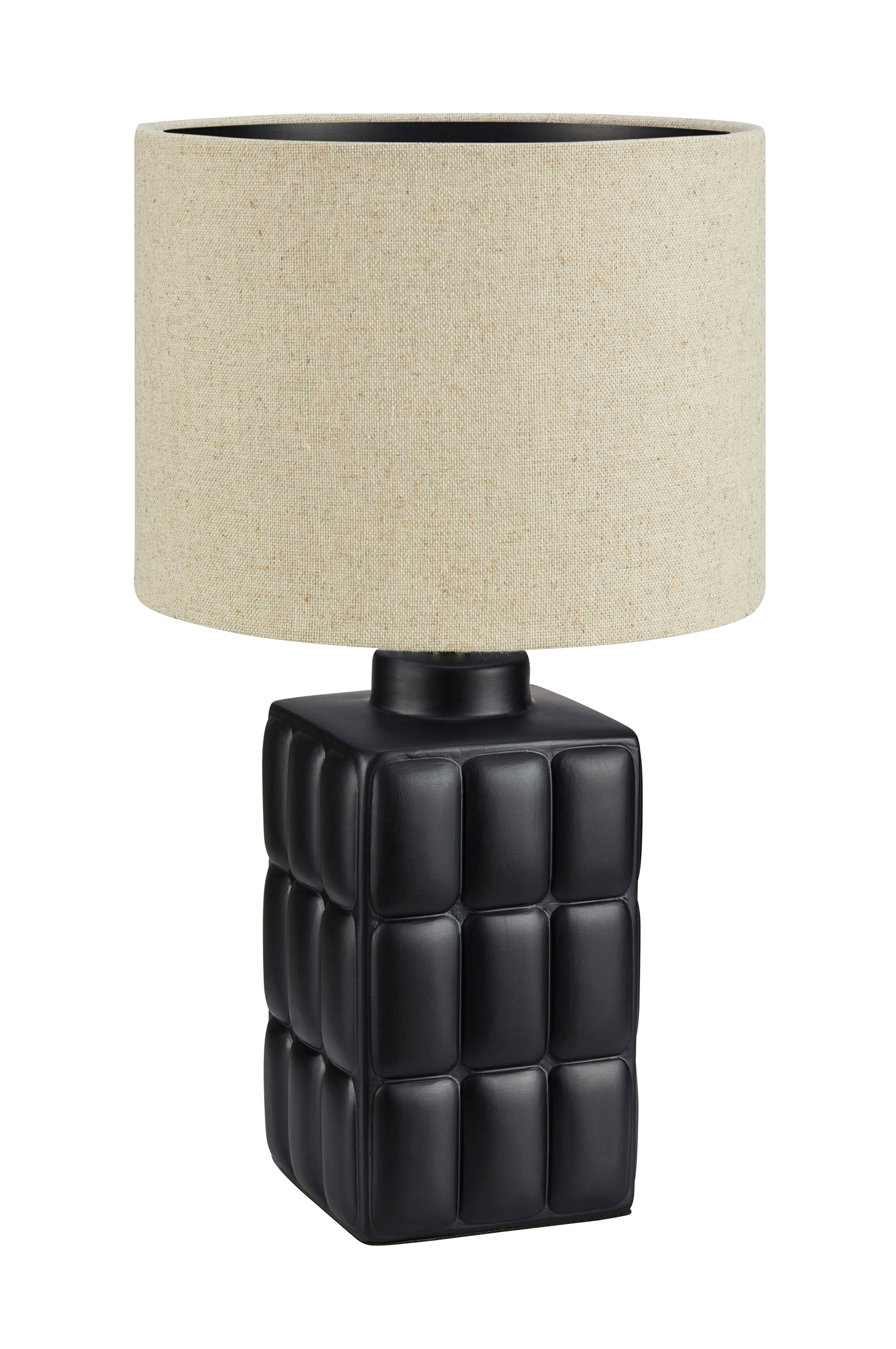 Bordslampan Cuscini från Markslöjd har en bas i keramik med skärm i linne. Den har en 200 cm lång textilkabel med strömbrytare på sladden och stickkontakt. Ljuskälla ingår ej.