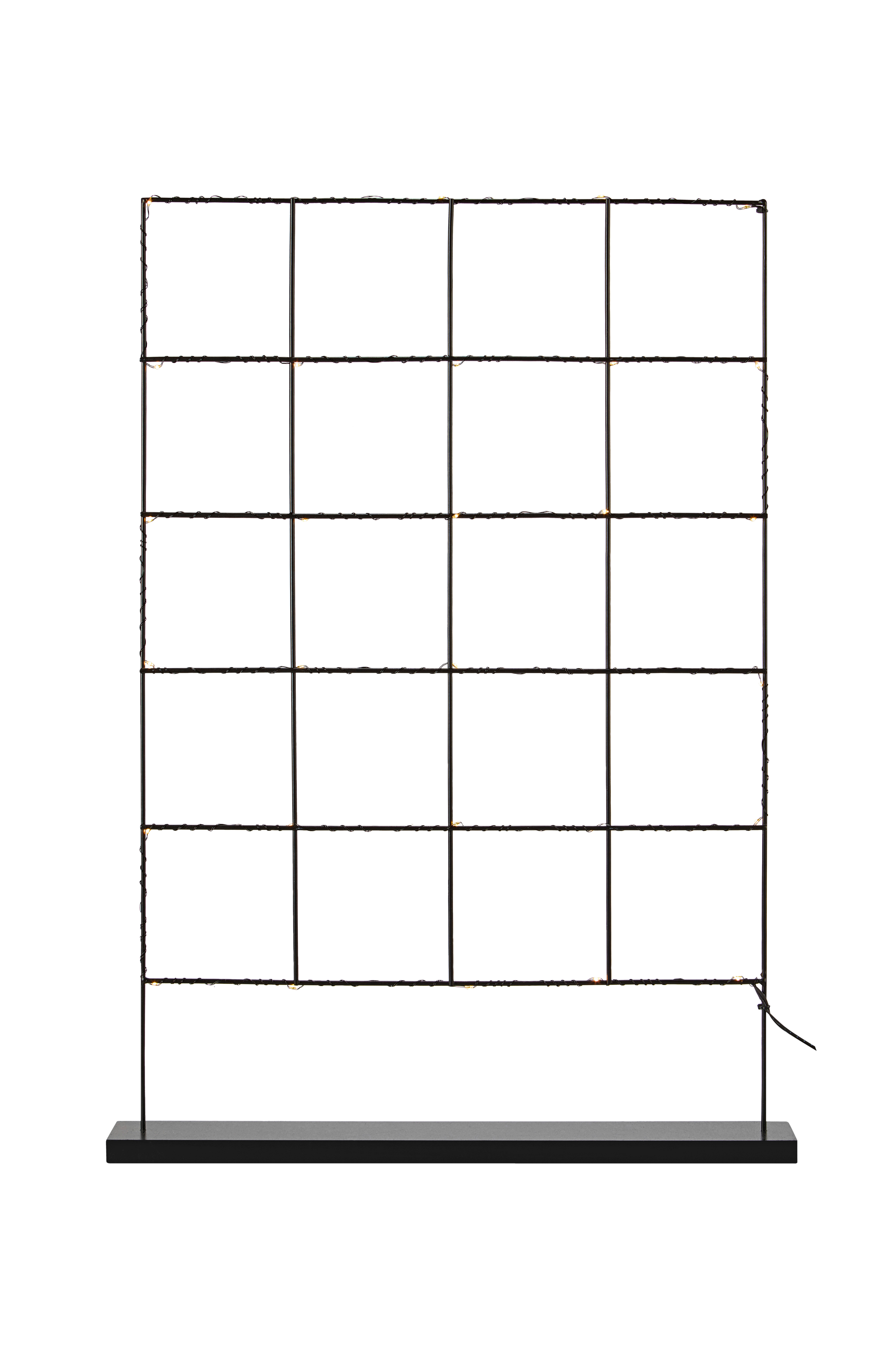 Bordsdekoration i metall och 30 st ljuspunkter i LED. 2 m kabel. Drivs med transformator. Höjd 61, bredd 44, djup 6 cm.