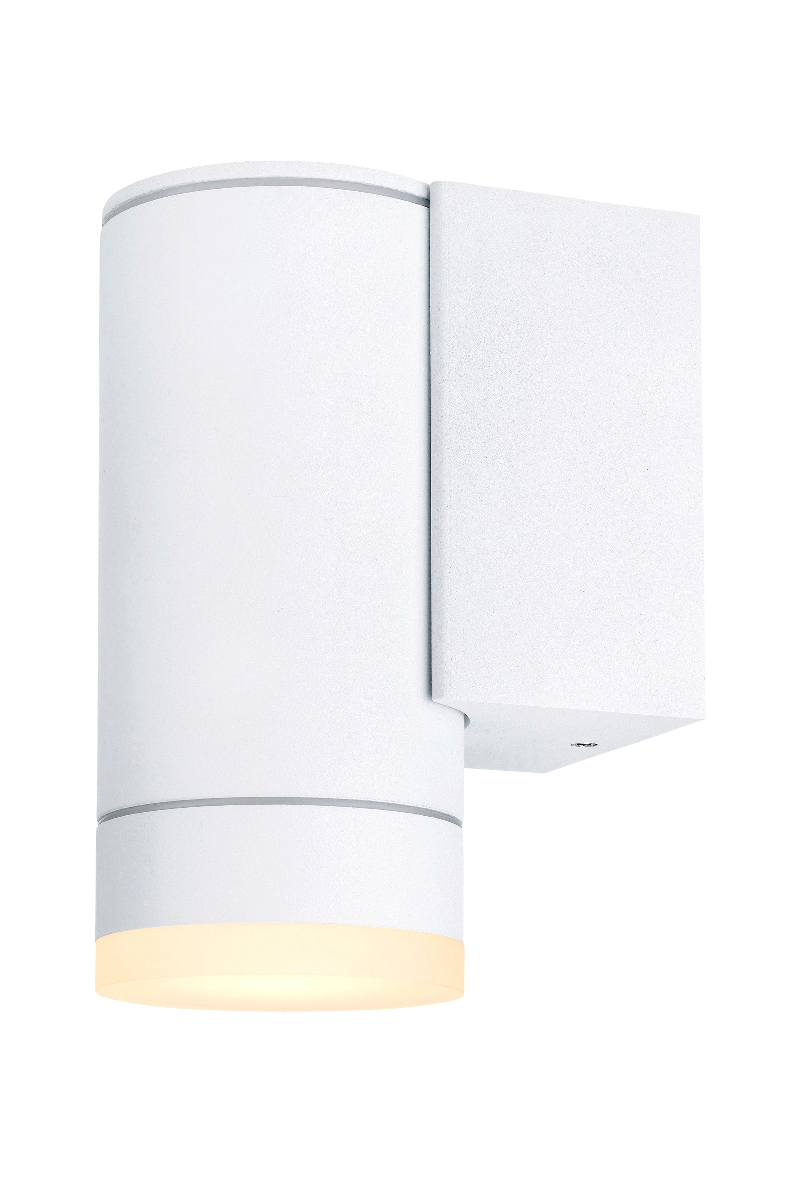 Markslöjd vägglampa Nova för utomhusbruk. IP-klass IP44 avsedd för fast, jordad installation. Pulverlackerad aluminium. Fast COB LED 5W. 3000K varmvitt ljus. 300 lm. Ej dimbar. Höjd 13,8 cm, bredd 6,5 cm, djup 10 cm.