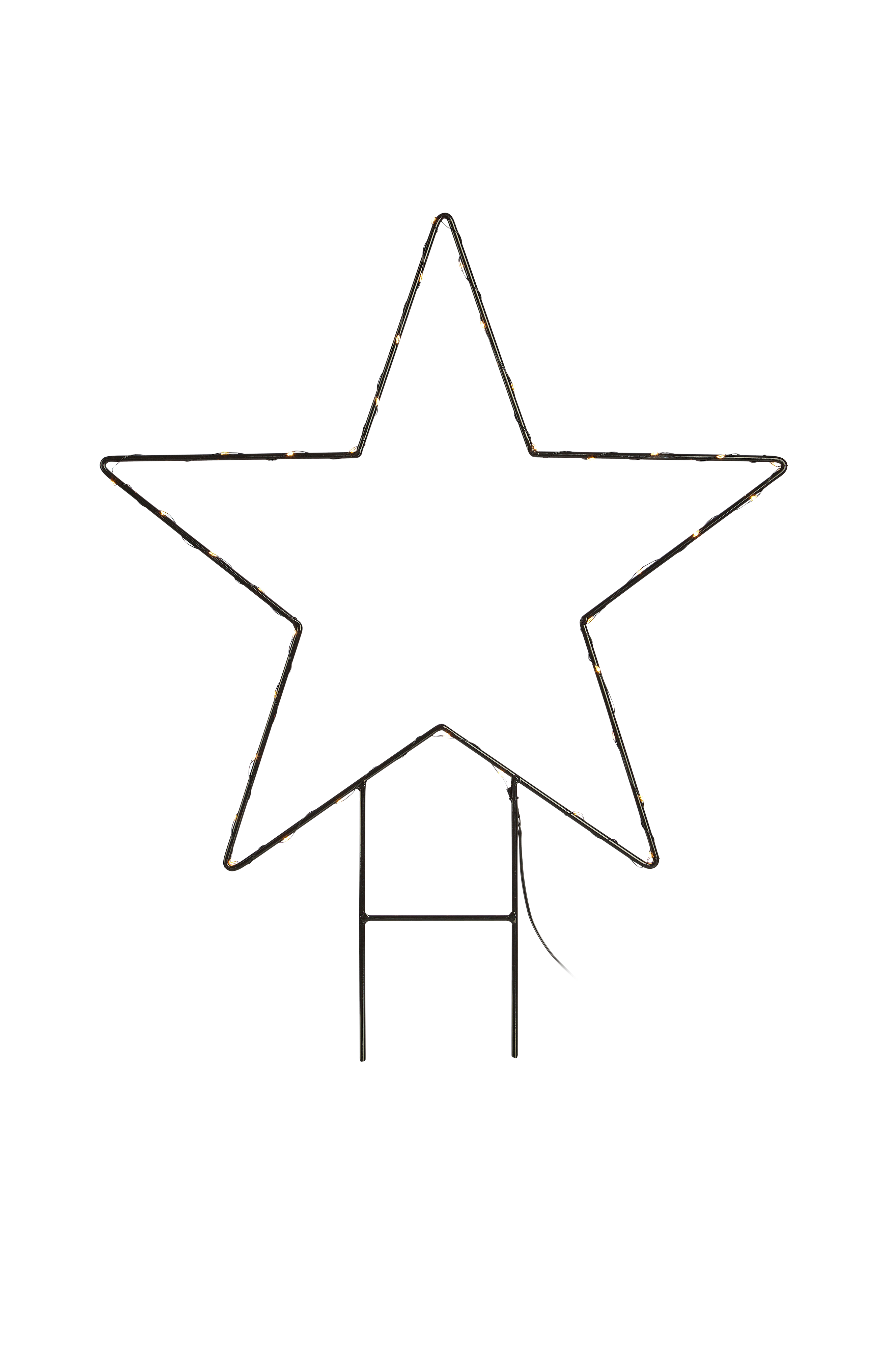 Mystic Stjärna låg i metall. Dekoration för utomhusbruk. Höjd 62 cm, bredd 50 cm. Sockel MINI LED. Sladdlängd 5 meter och plugg-in trafo. Varmvitt LED-ljus. IP44.
