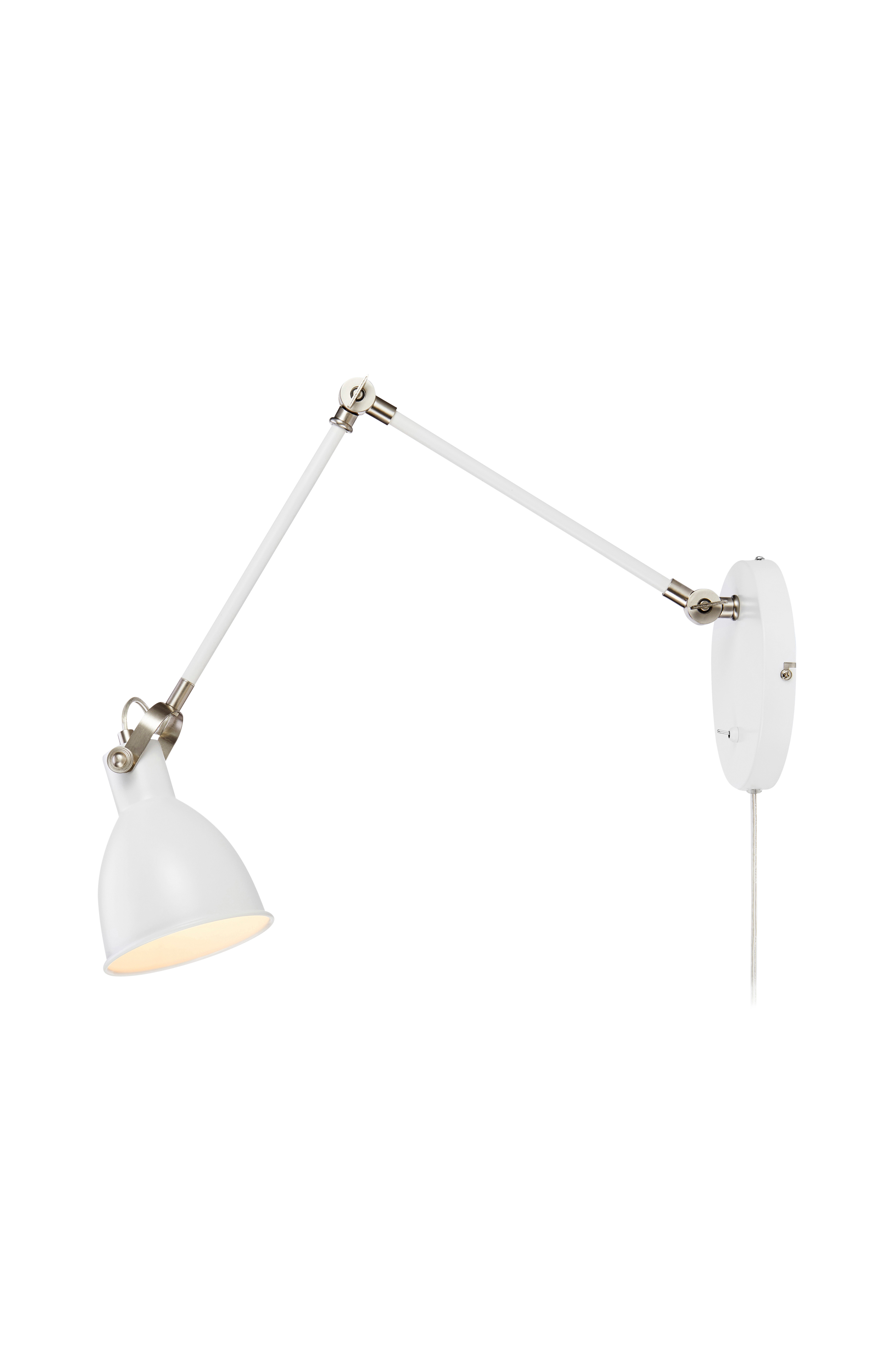 Vägglampa House från Markslöjd är i metall med detaljer i stål. Den har en 200 cm lång kabel i plast och stickkontakt. Strömbrytare finns på väggplattan. Monteras med bygel. Ljuskälla ingår ej.
