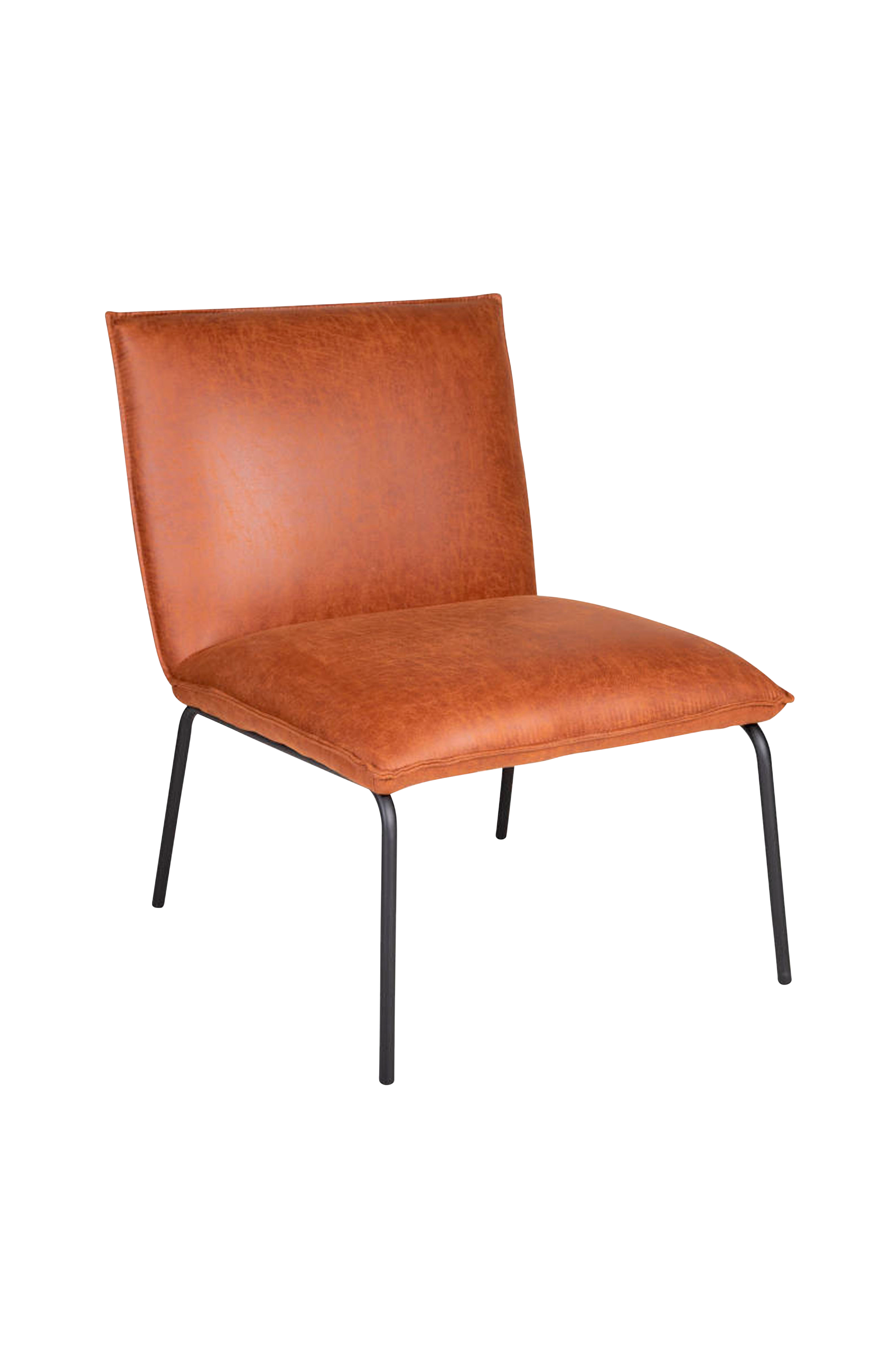 Läcker fåtölj som passar bra i hallen eller i barn rummet. Cognacfärgad PU och ben i svart metall