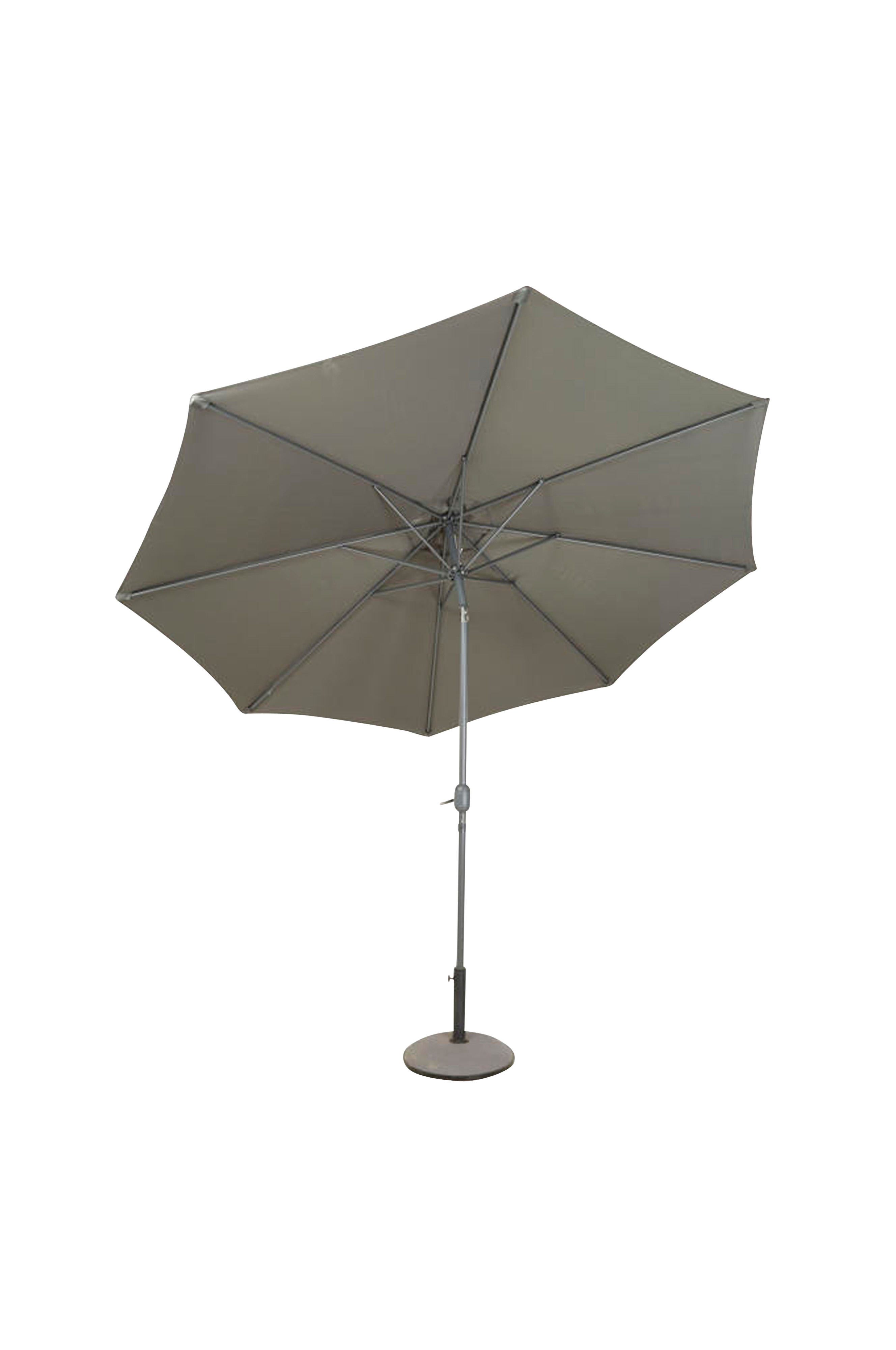 Parasoll med en pulverlackerad aluminiumstolpe och 8 stålribbor. Med vev och tiltfunktion. Tillverkad med en 180 g polyester. Levereras utan fot.
