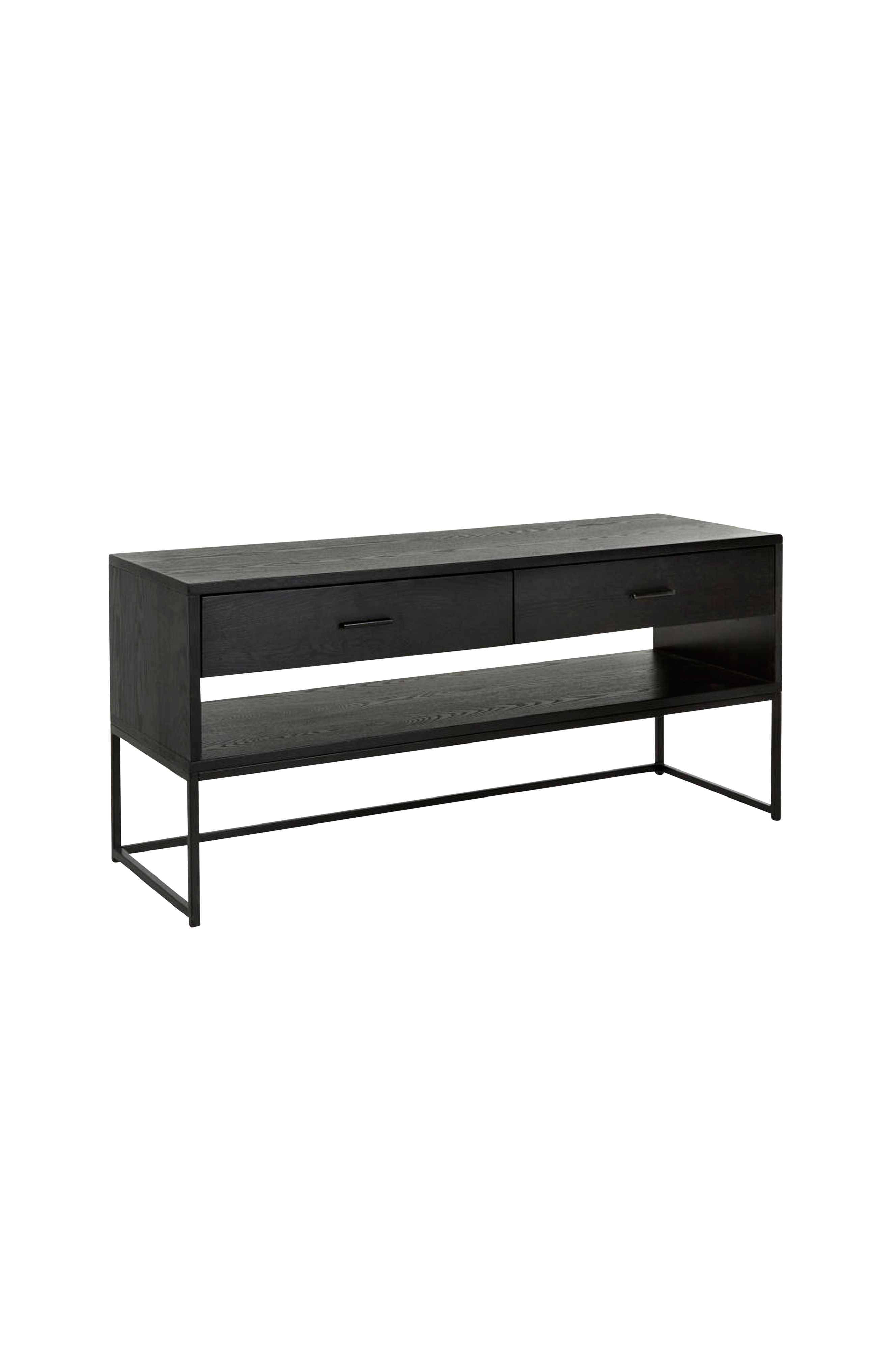 Stilrent avlastningsbord i svart askfaner på MDF och metallstativ med lådor och softclose funktion.