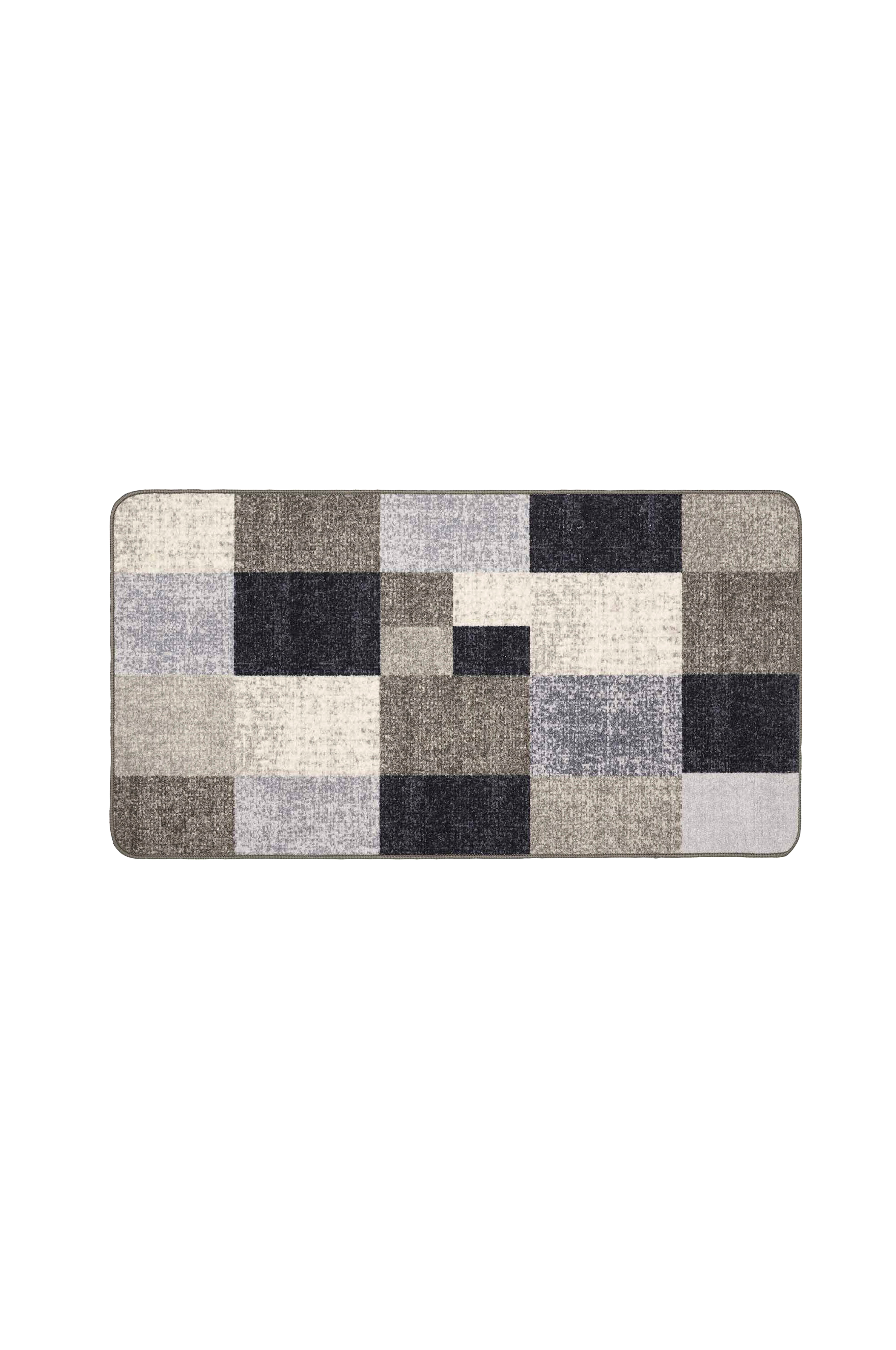 Matta med gummerad baksida som gör att den ligger stadigt på golvet.fint mönster med rutor i naturfärger.