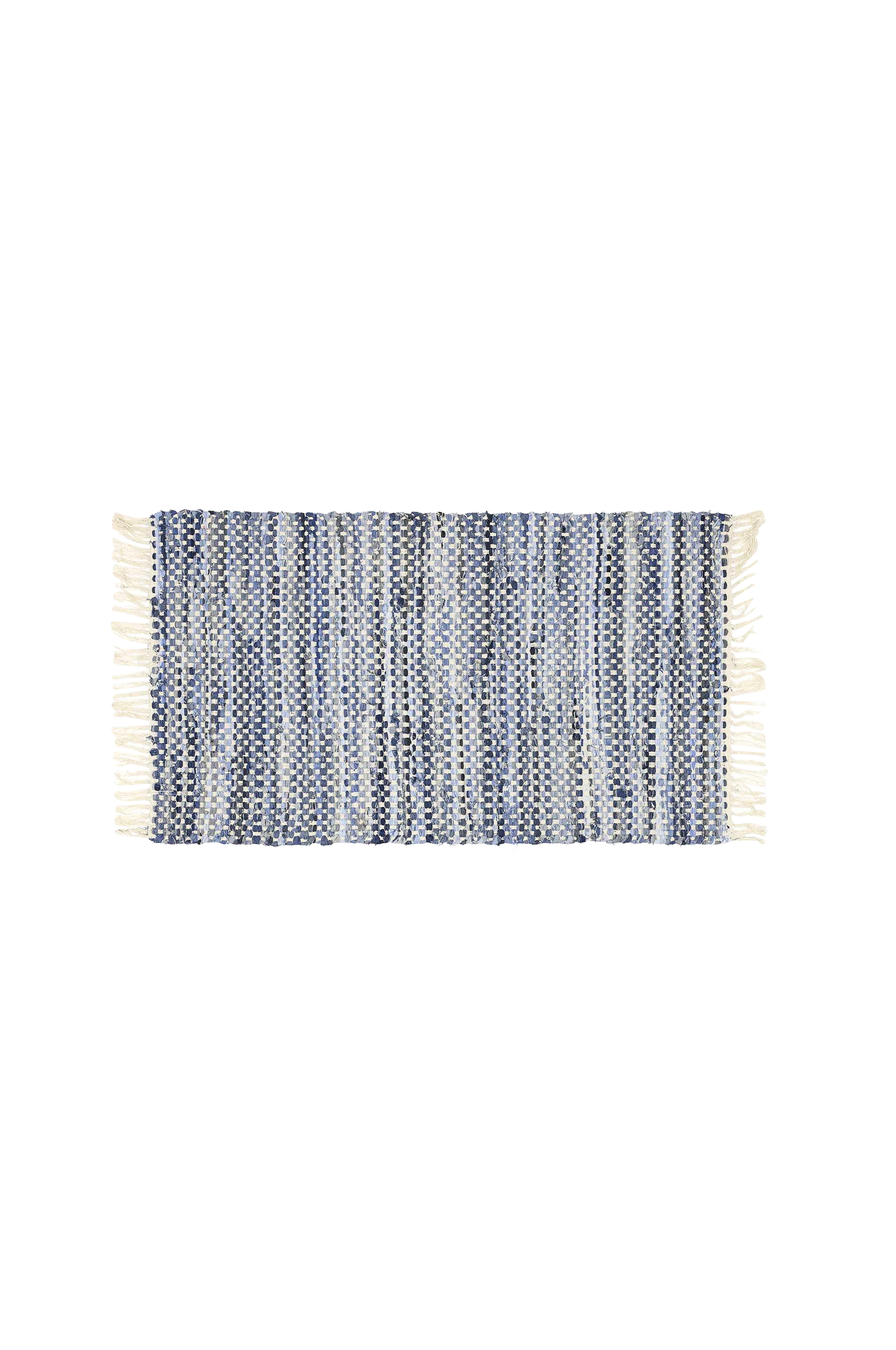 Trasig matta med fransar i denimtyg. Perfekt för sommarköket och hallen. Tjock kvalitet