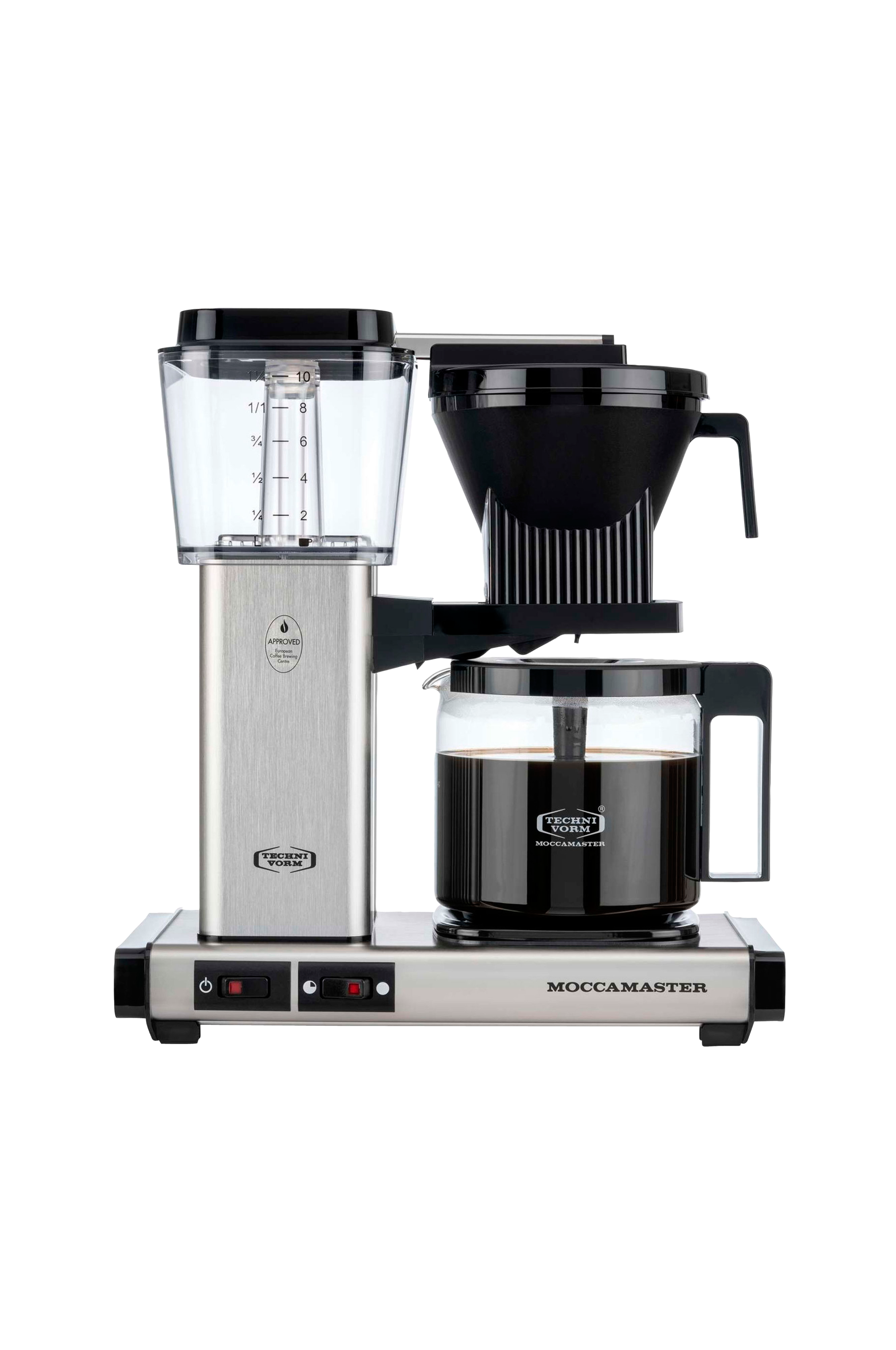 Moccamaster Automatic kaffebryggare har en automatisk droppstoppsfunktion som förenklar bryggningsprocessen och förhindrar att kaffe droppar från filterhållaren när du tar bort glaskannan från kaffemaskinen. Den kan brygga upp till 10 koppar eller 1,25 liter utsökt kaffe på bara 6 minuter.