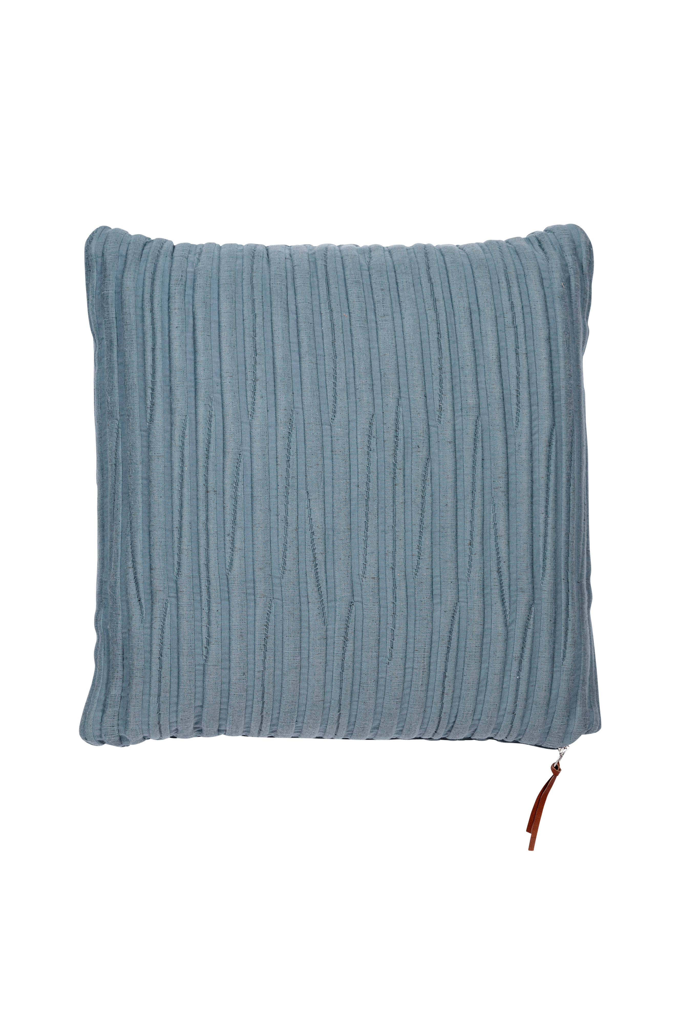 Kuddfodral i ribbad grov kvalitet med struktur. Dragkedja med guldfärgad ring och dekorativt läderband. Stl 45x45cm. Endast kemtvätt.