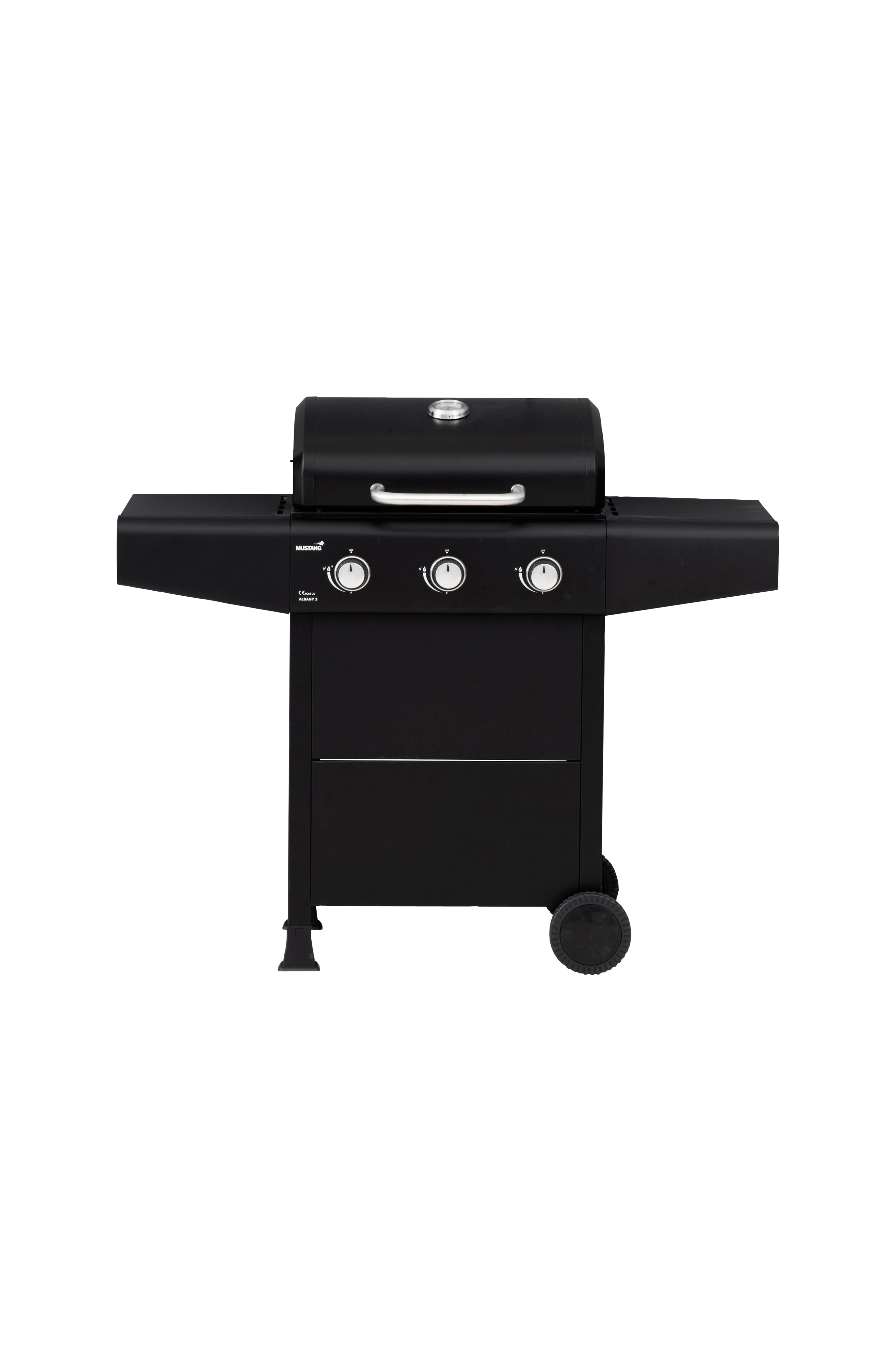 Gasolgrill med tre brännare i rostfritt stål SS410. Brännarnas effekt 3 x 2,5 kW. Total effekt 7,5 kW.