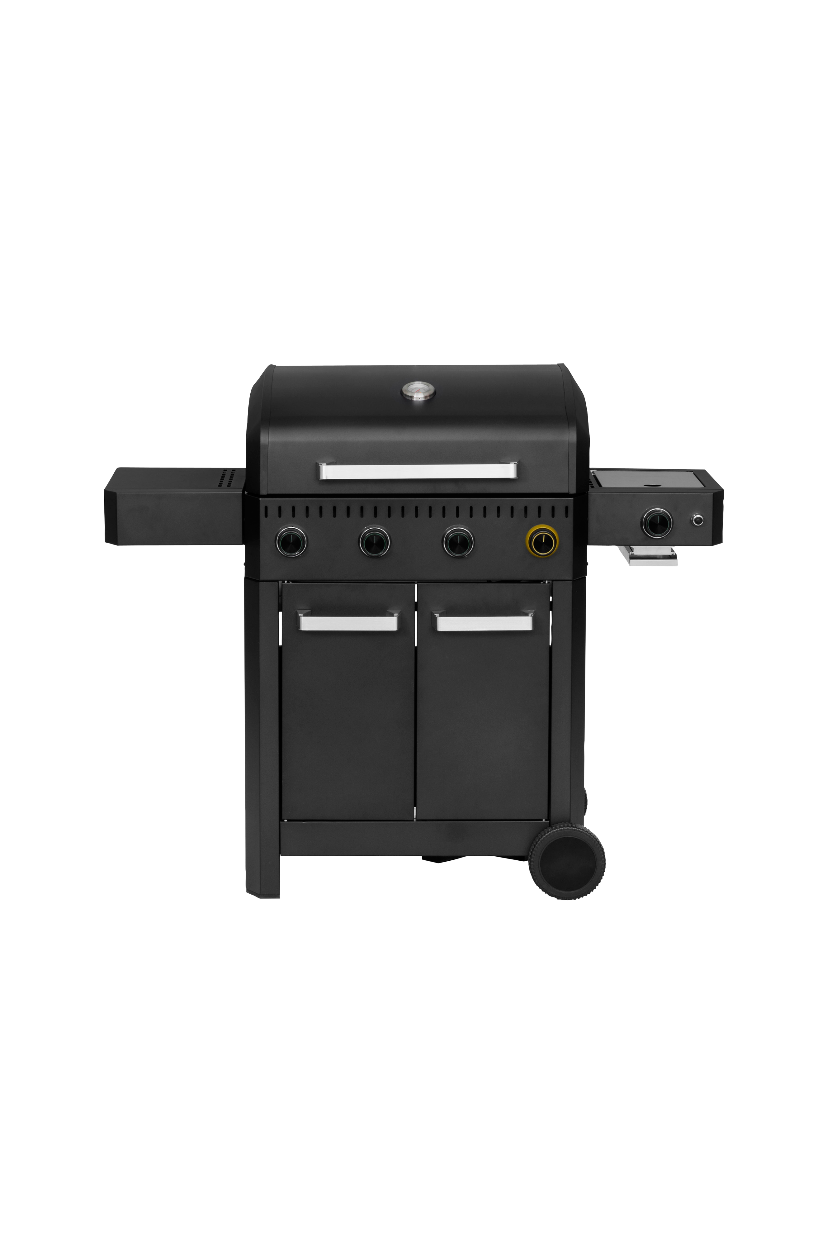 Skåpet under grillen är godkänd för gasolflaska. 2 stora hjul underlättar förflyttning av grillen.