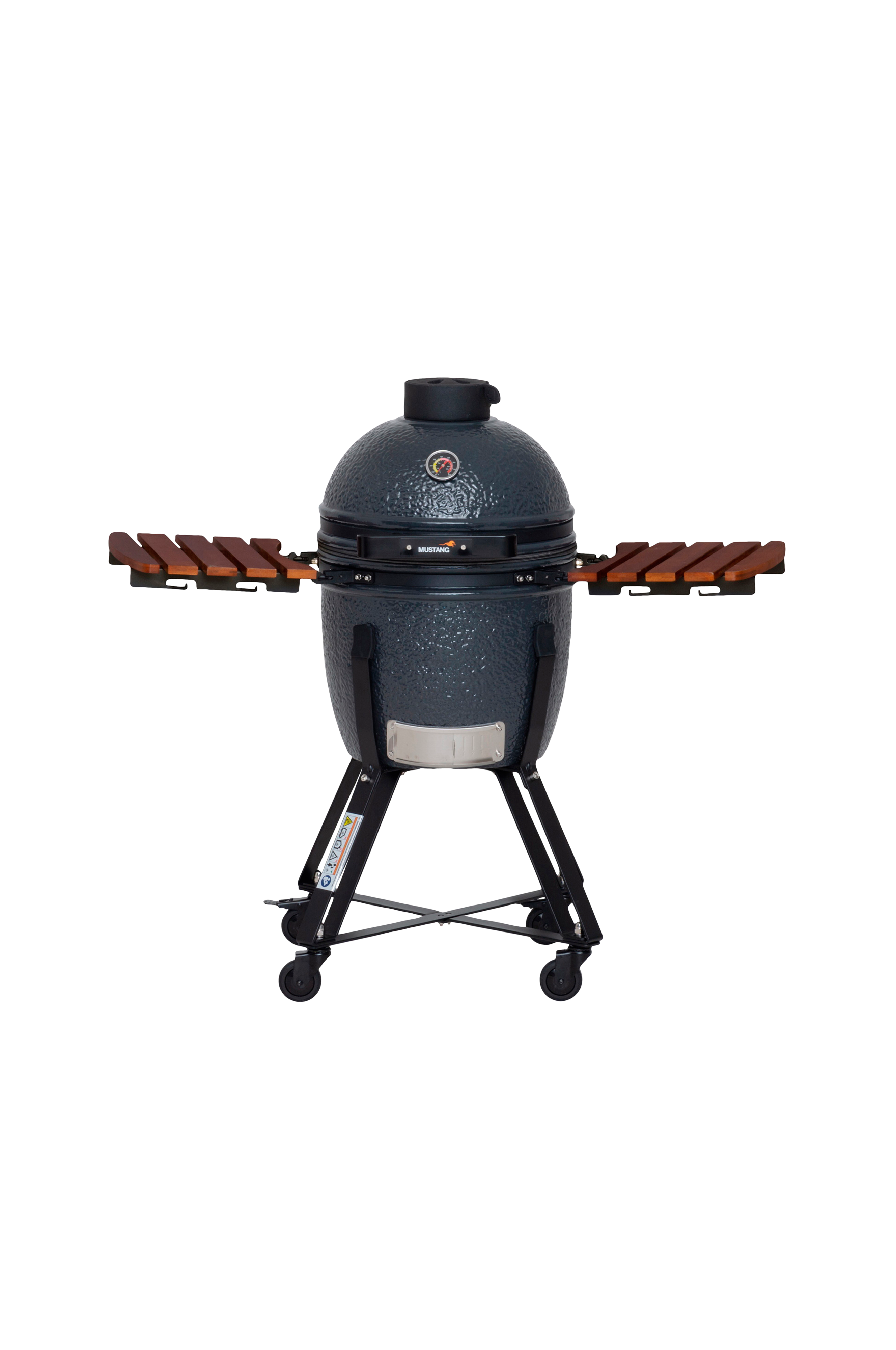 En keramisk Kamado 18″ kolgrill för grillning på låg värme under en lång tid.