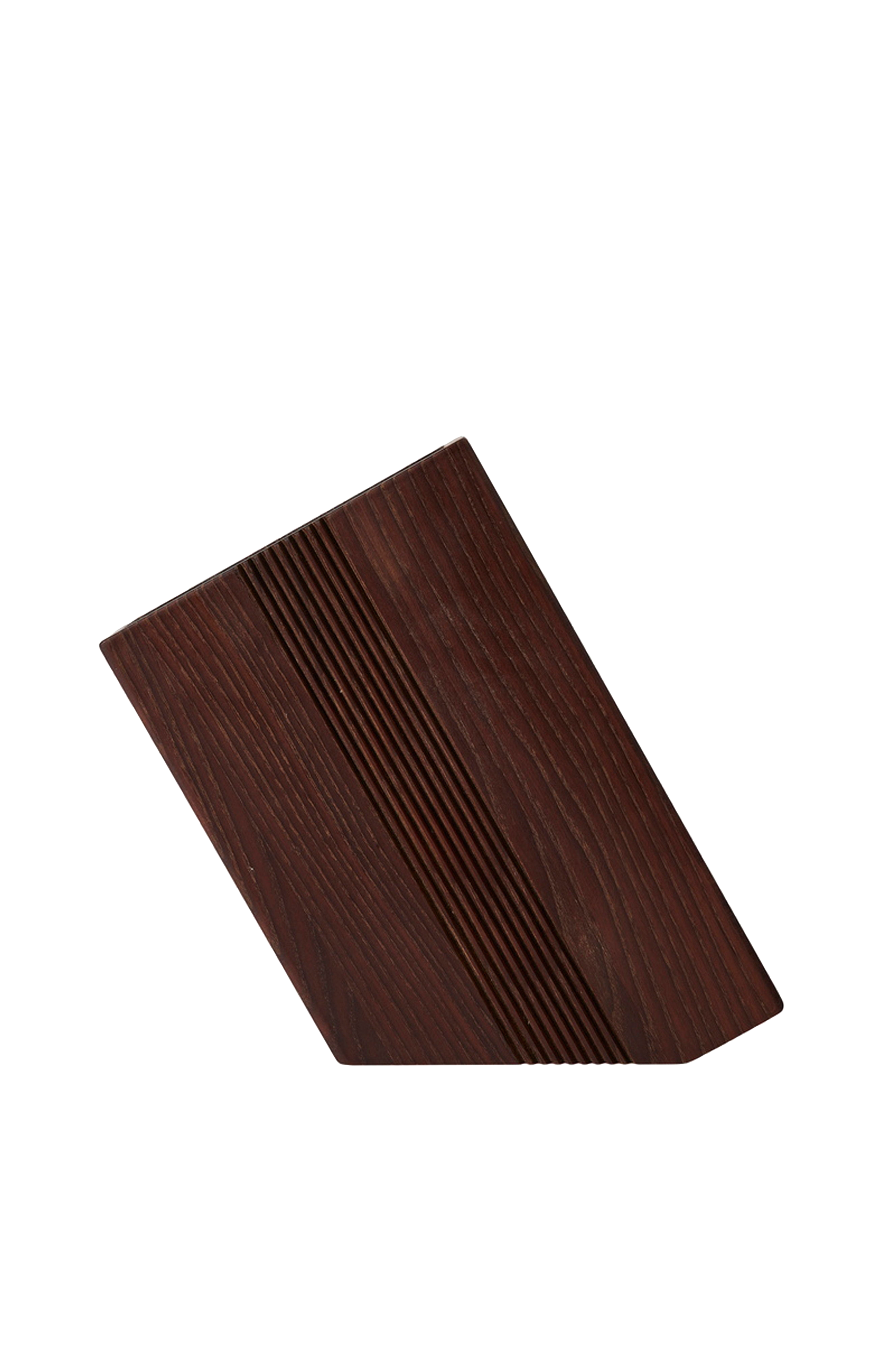 Knivblocket från Yami-serien är tillverkat av karboniserat askträ, vilket ger den mörka färgen som är ikonisk för serien. Designat med subtila detaljer och eleganta spår skapar det en snygg och raffinerad kontrast till det mörka träet. Yami-serien är inspirerad av Japan och passar vackert ihop med ljust stengods eller marmor i köksinredningen. Knivblocket är både ett elegant och funktionellt tillskott till köket, som skyddar dina knivar samtidigt som det ger en stilfull touch till rummet. Knivarna förvaras i skyddande plaststrån inuti knivblocket. Det är viktigt att knivarna sätts in vertikalt för att undvika att skada sugrören. Observera att sugrören inte är fuktbeständiga, så knivarna bör vara torra innan de placeras i dem. Knivblocket har plats för 6-8 knivar. Den brända doften från det karboniserade askträet kommer gradvis att blekna med användning!