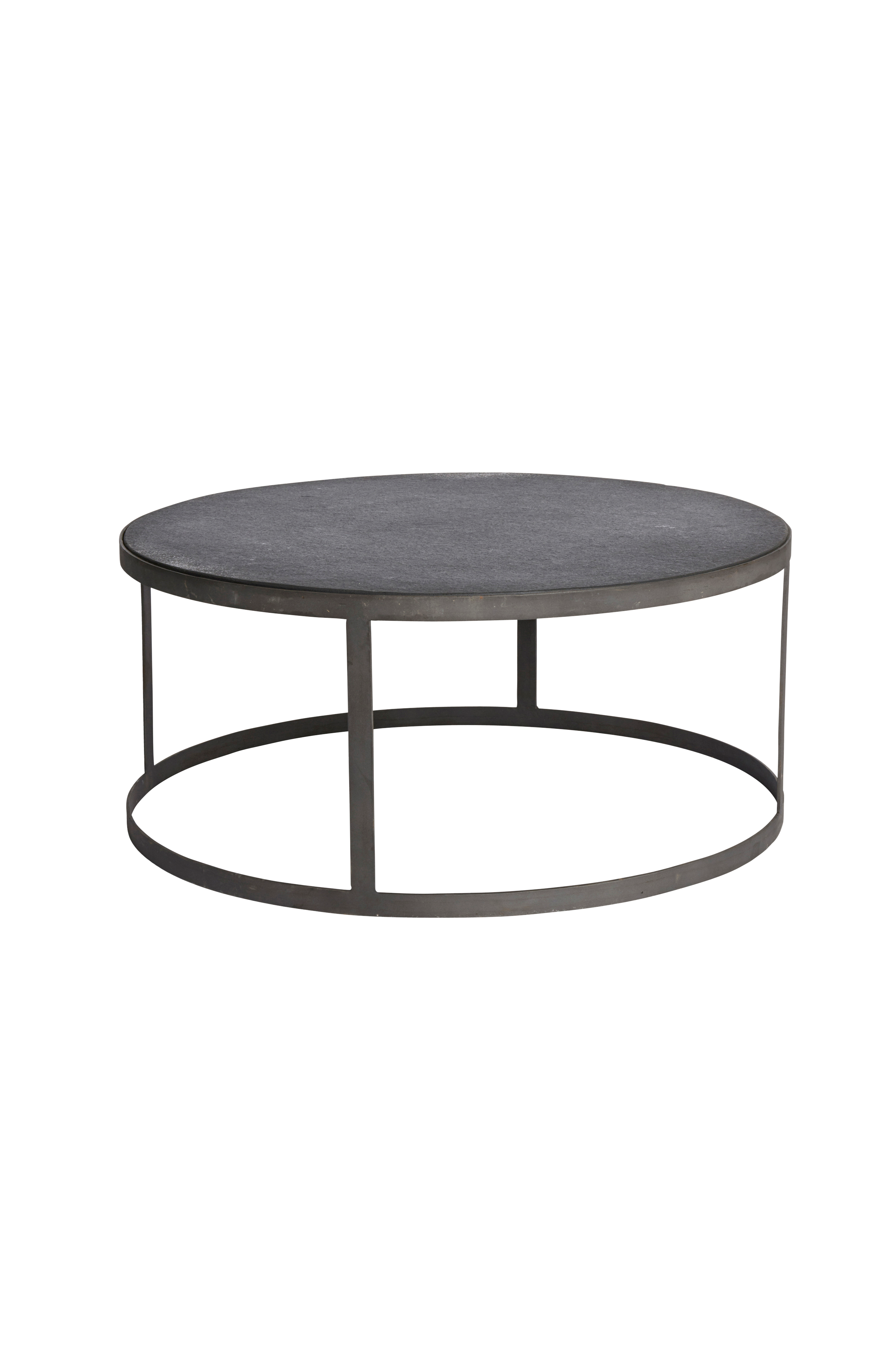 Low soffbord i massivt järn med bordsskiva i sten. Det svarta soffbordet från muubs har en funktionell storlek och höjd som gör det lämpligt för soffgruppen eller som sidobord.