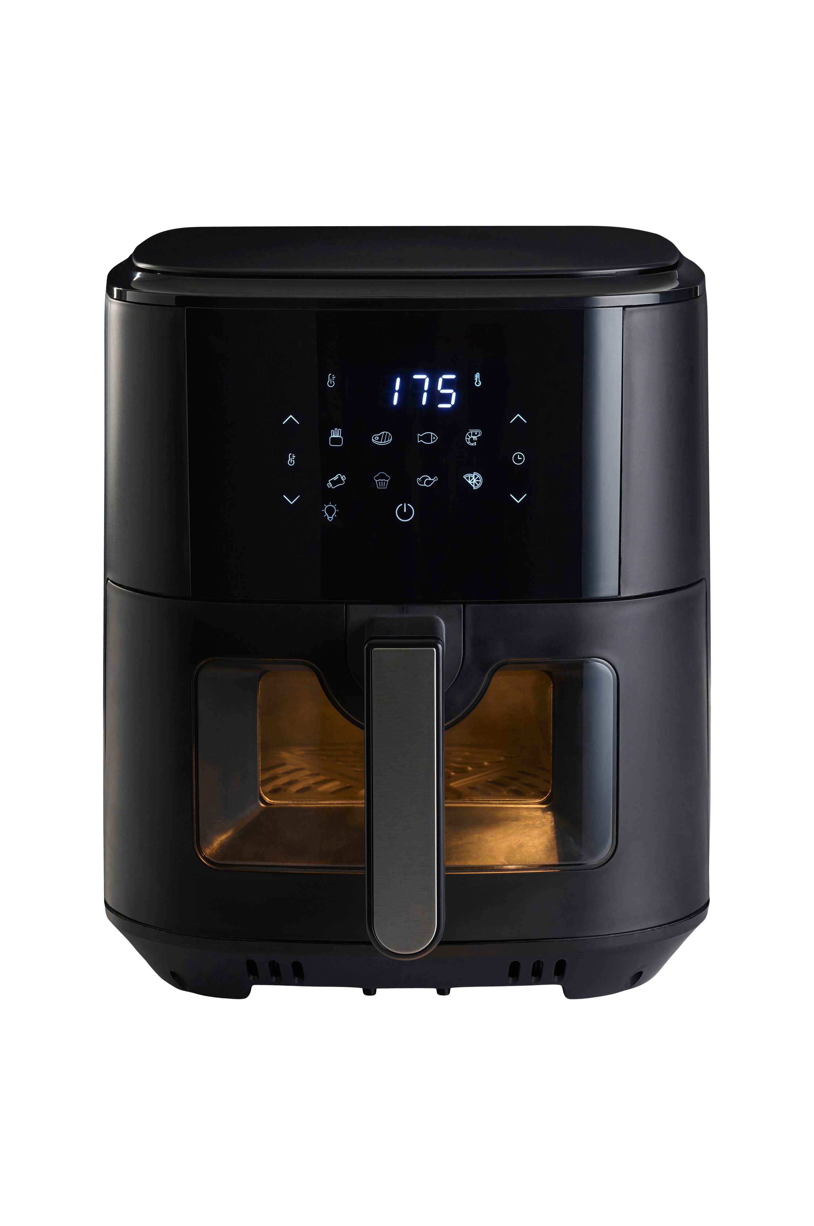 Vi presenterar den ultimata kökskompisen: vår 1500 W airfryer. Upplev kulinarisk perfektion med precision med hjälp av den ledda pekskärmen och 60-minuterstimern. Uppnå utsökta resultat med justerbara temperaturer från 65°c till 200°c. Den non-stickbelagda, löstagbara kastrullen gör det enkelt att laga mat och rengöra. Tack vare fönstret och indikatorlampan kan du övervaka hur din måltid fortskrider utan avbrott. Med 8 fördefinierade matlagningsfunktioner kan du njuta av mångsidiga rätter med fingertopparna. Airfryern är utformad för bekvämlighet och drivs med 220-240 V, 50-60 Hz och har halkfria fötter för ökad säkerhet. Förhöj din matlagningsförmåga med vår banbrytande airfryer - där smak möter teknik. Hämta din katalog nu och upptäck framtidens matlagning!
