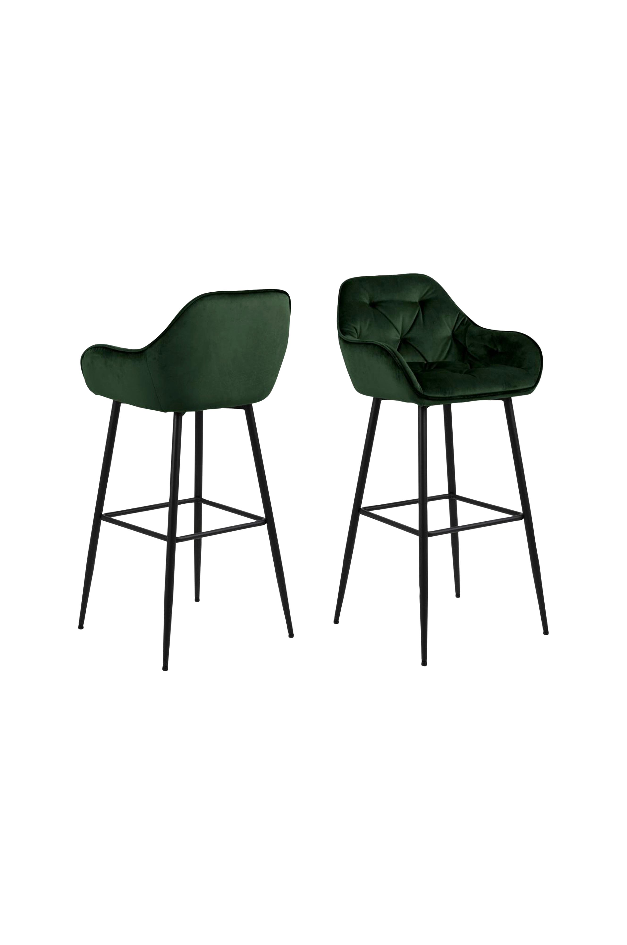 Ge hemmabaren lite extra karaktär med denna tidlösa möbel. Denna barstol är klädd med ett mjukt tyg och passar för både drinkar och morgonkaffe. Sits med tuftade detaljer som ger textur och struktur, och metallstomme med fotstöd. Sammetstygets färg skiftar beroende på ljuset och riktningen på luggen, vilket ger en levande, lyxig känsla.