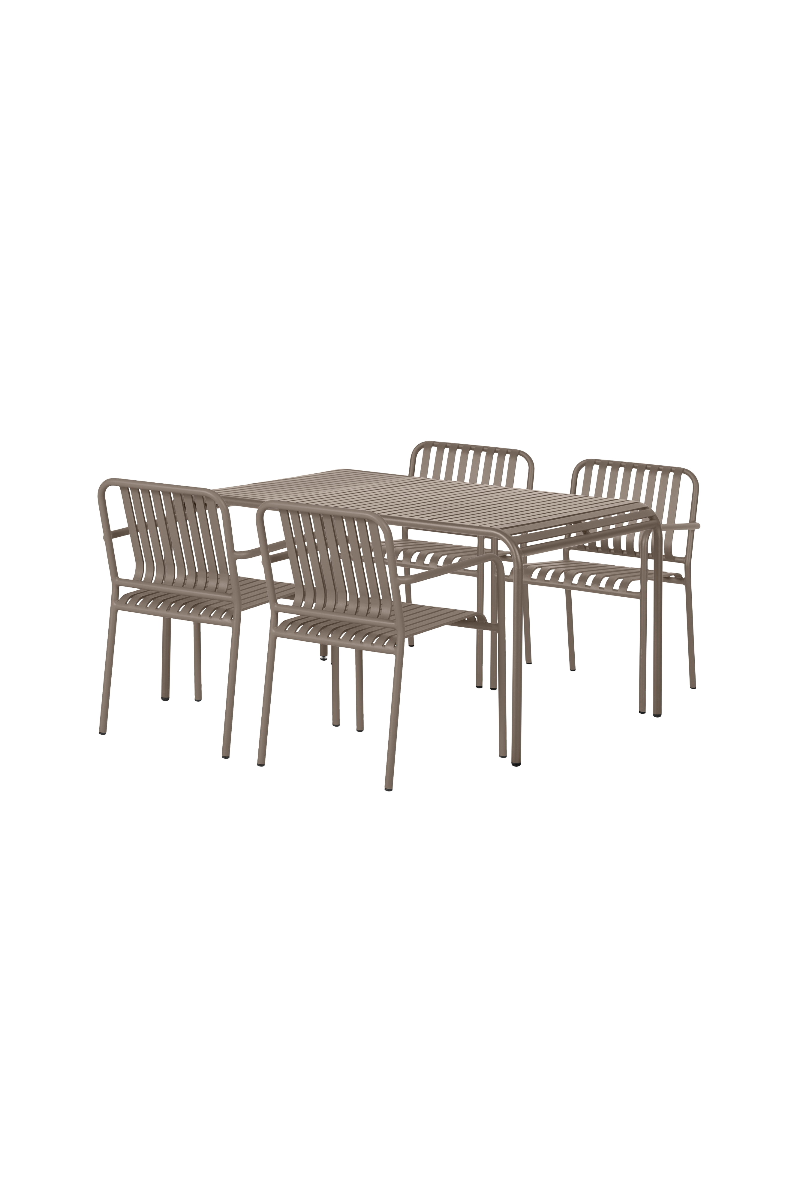 Stolarna i serien är alla mycket robusta. De har synliga snygga svetsar och raka linjer. De breda metallribborna ger också stolarna ett rent utseende. Stolen har ett långt sittdjup som gör att du kan sitta bekvämt även utan dynor. Stolarna är tillverkade av slitstark aluminium, som är ett starkt men också lätt material. Metallen är belagd för att göra den underhållsfri. Stolen är stapelbar för enkel förvaring. Trädgårdsborden i serien är alla tillverkade av robusta material. De har synliga svetsar och raka linjer, vilket ger ett intryck av att vara råa och samtidigt snygga. De breda metallskivorna ger också borden ett rent och enkelt utseende som passar in i den moderna stilen, samtidigt som de är flexibla och ovanliga. De finns också med ett helt bord i ena änden, vilket skapar ett dynamiskt utseende med lamellerna som täcker mer än hälften. Bordet är tillverkat av slitstark aluminium, som är ett lätt och starkt material. Metallen är behandlad för att göra den underhållsfri.