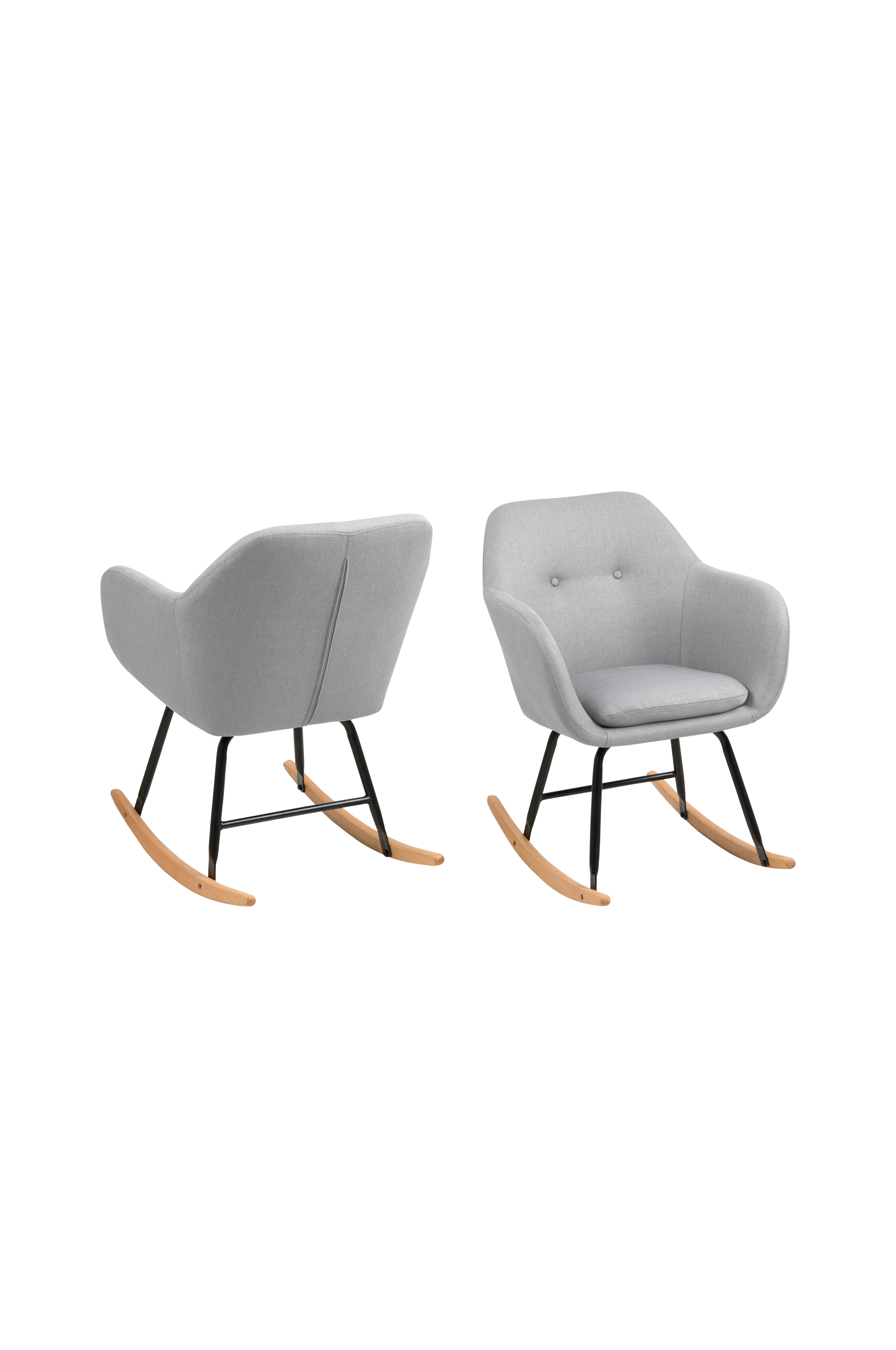 Gungstol i modern tappning. Klädd i tålig textil >25000 Martindale, 100% polyester. Underrede i svart metall på medar i ekfärgat trä. Montera själv.