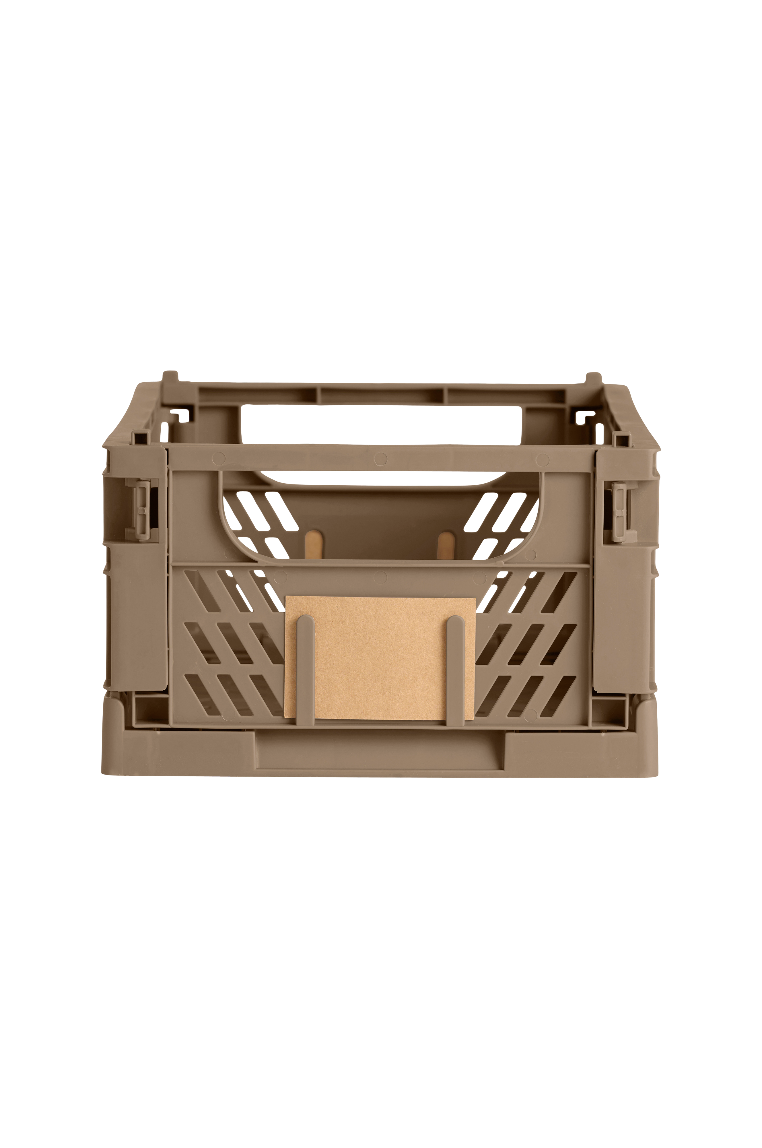 En klassisk förvaringslåda. Den är lätt att vika ihop och en liten förvaringslapp medföljer, som kan sättas fast på fram- och baksidan. Lådan tar väldigt lite plats när den är hopvikt och när den är utvikt kan den staplas säkert. Lådorna finns i flera storlekar och kan användas i till exempel köket, hobbyrummet eller ateljén. Lådan finns i flera färger.