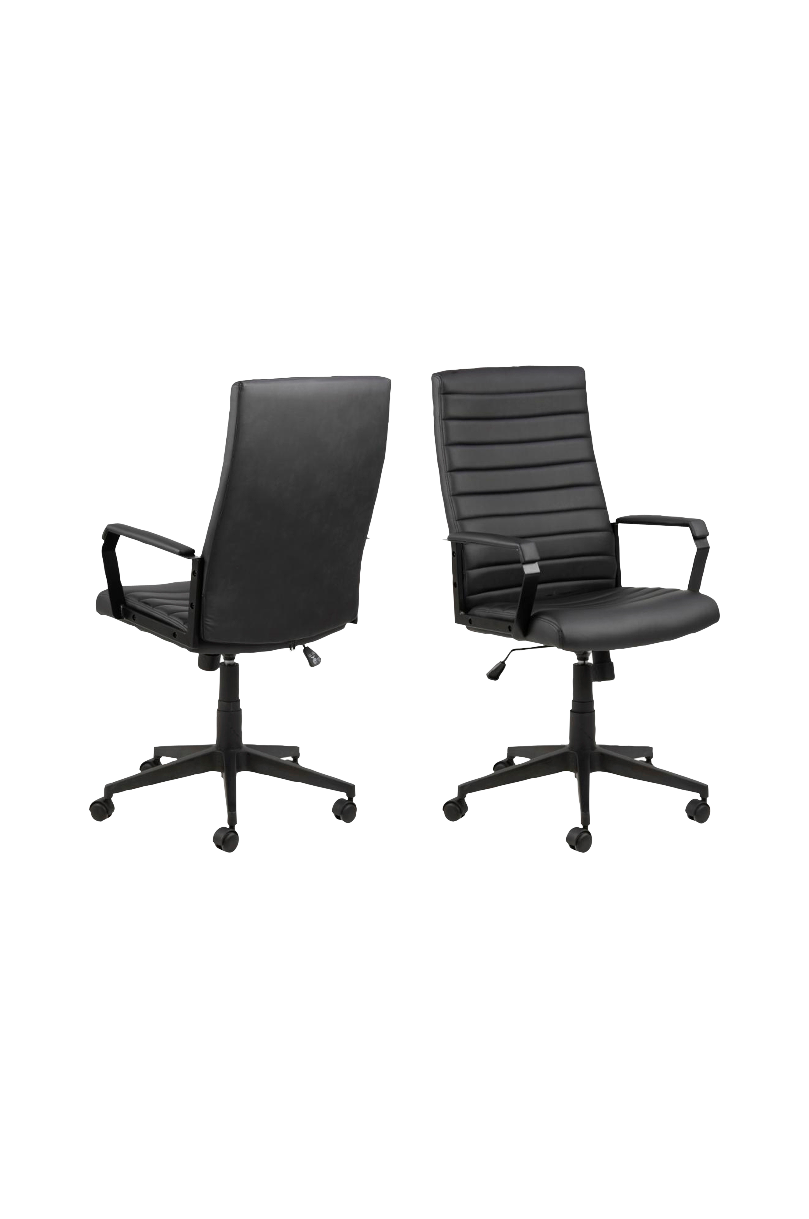 Få saker gjorda i den här moderna skrivbordsstolen med nylonbotten och konstläder klädsel. Gaslyftmekanismen erbjuder enkel sitshöjdsinställning för optimal komfort. Det stödjande ryggstödet och armstöden uppmuntrar dig att behålla en bra hållning.