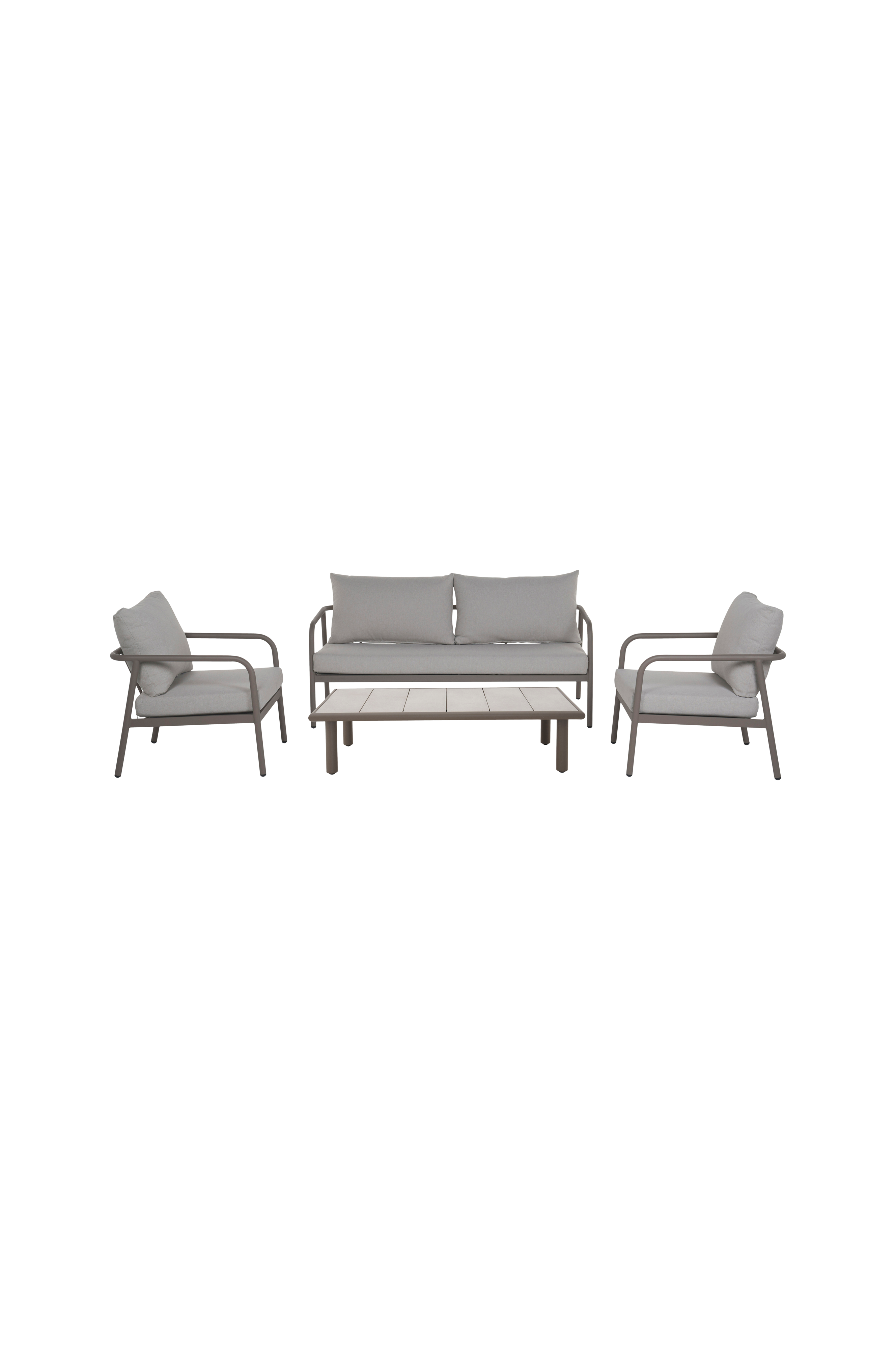 Unna dig lyx med vårt utsökta möbelset! Soffan, w166xd77xh63cm, har en generös 160 cm bred sits och en 10 cm tjock dyna för oöverträffad komfort. Till soffan hör en stol i perfekt storlek, w66xd77xh63cm, med en 60 cm bred sits som garanterar en mysig tillflyktsort. Bordet, b127xd65xh32cm, tillför funktionalitet till ditt utrymme. Setet är klätt i 220 g spunnet polyestertyg och kombinerar elegans med hållbarhet. Soffan klarar upp till 220 kg, medan stolen klarar 110 kg, vilket gör denna ensemble till en perfekt blandning av stil och styrka för ditt vardagsrum!