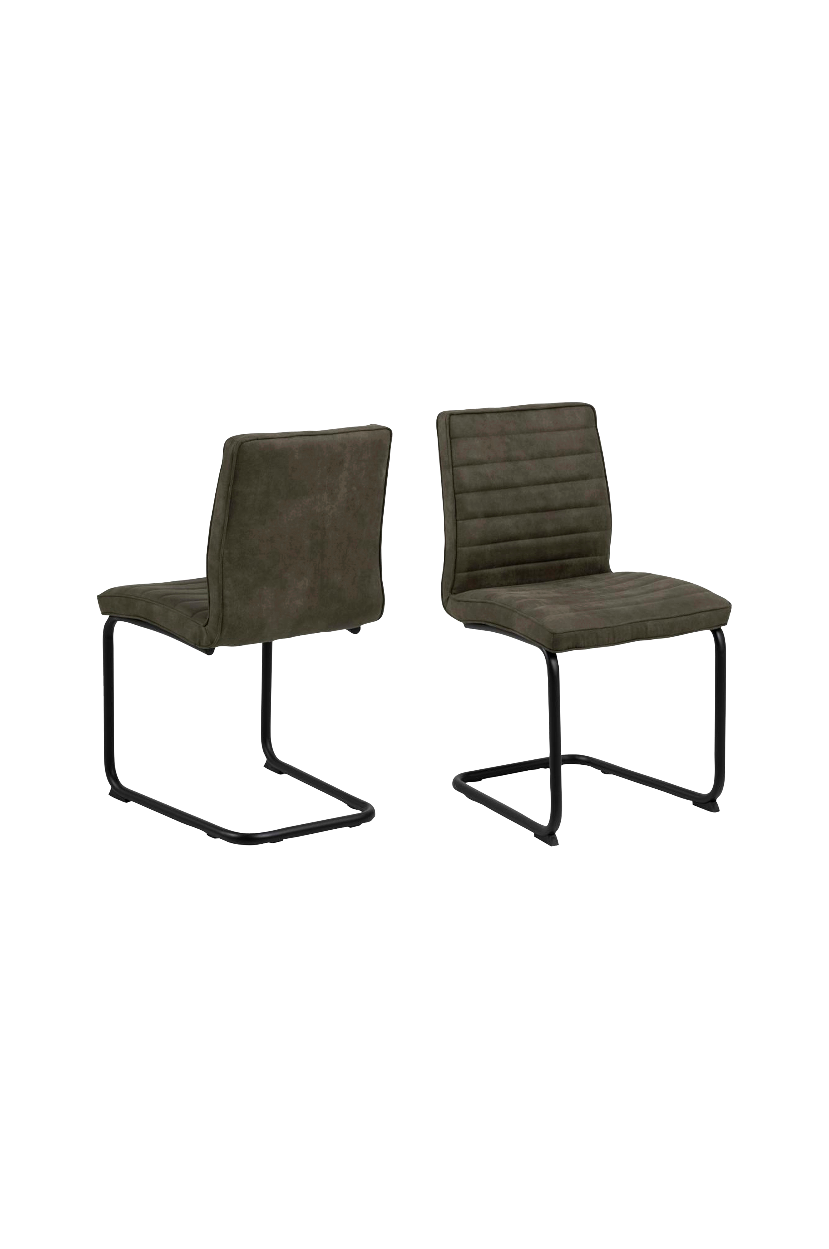 Stol i enkel stil med geometrisk silhuett och kantband. Den rymliga sitsen gör att du kan röra dig fritt och det kortare ryggstödet harmonierar med stolens proportioner. För att ge garanterad komfort är sitsen vadderad och klädd i ett mjukt tyg. Stilen kompletteras med metallben med gungfunktion, som ger designen en futuristisk twist.