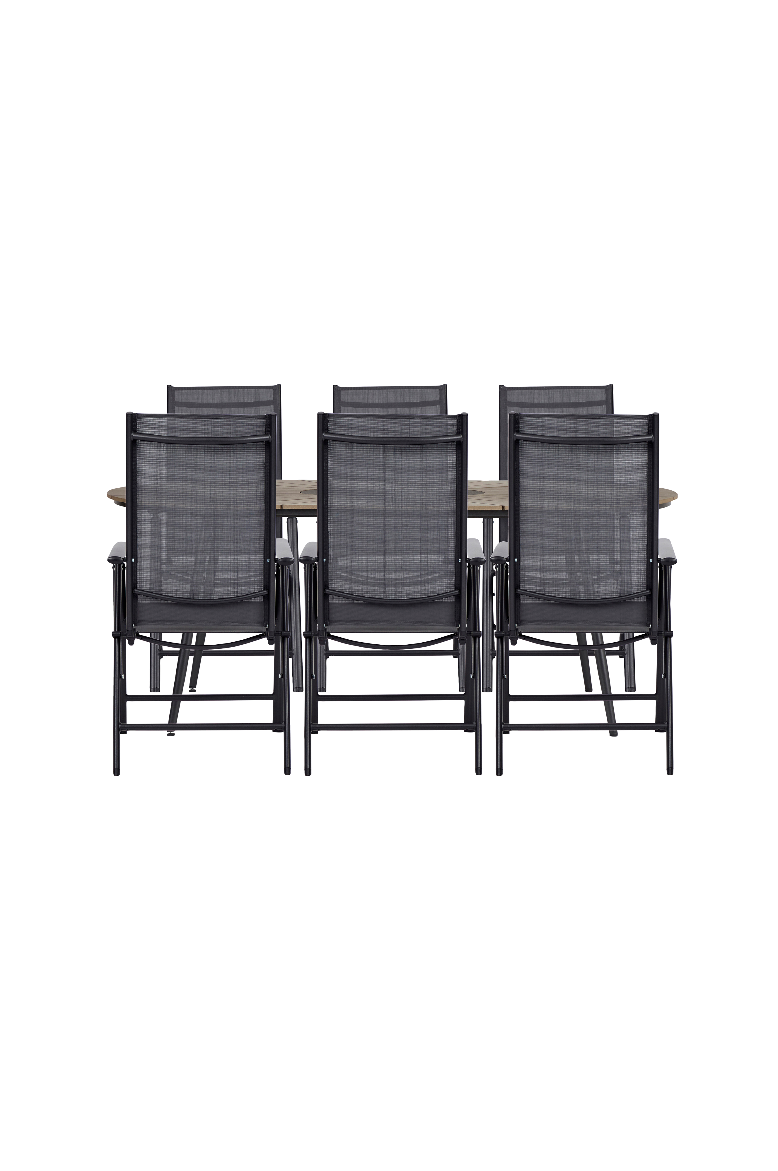 Trädgårdsstol med svart stomme av aluminium och svart sits av kraftigt meshmaterial. Meshmaterialet är bekvämt att sitta på och ingen stolsdyna behövs. Stolen är enkel att fälla ihop och passar perfekt för gäster. Den har även en steglös funktion som gör att du nästan kan ligga raklång.