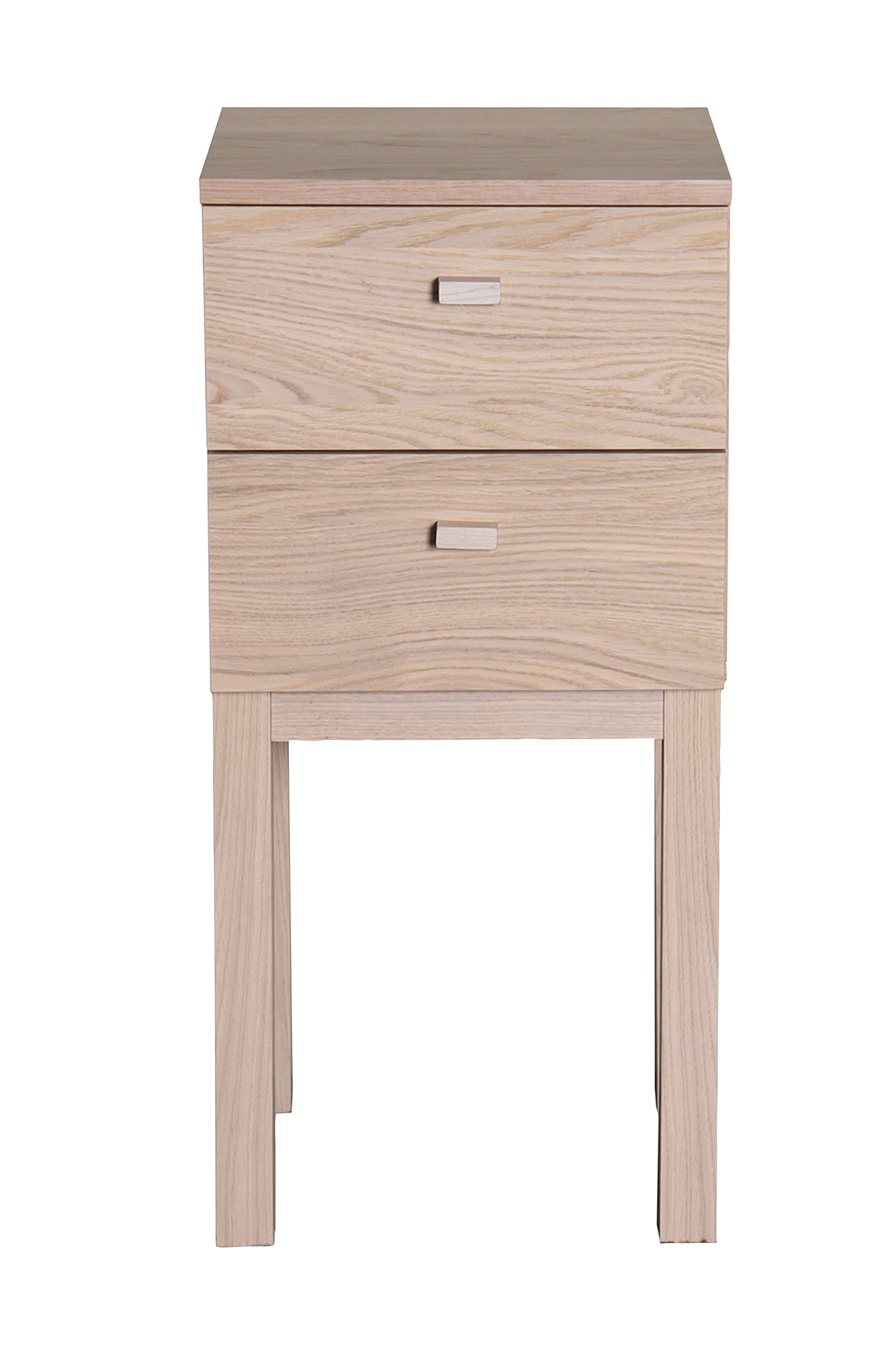 Smögen sängbord med två lådor. Stilren och enkel design, höjd 75 cm, bredd 35 cm, djup 35 cm.