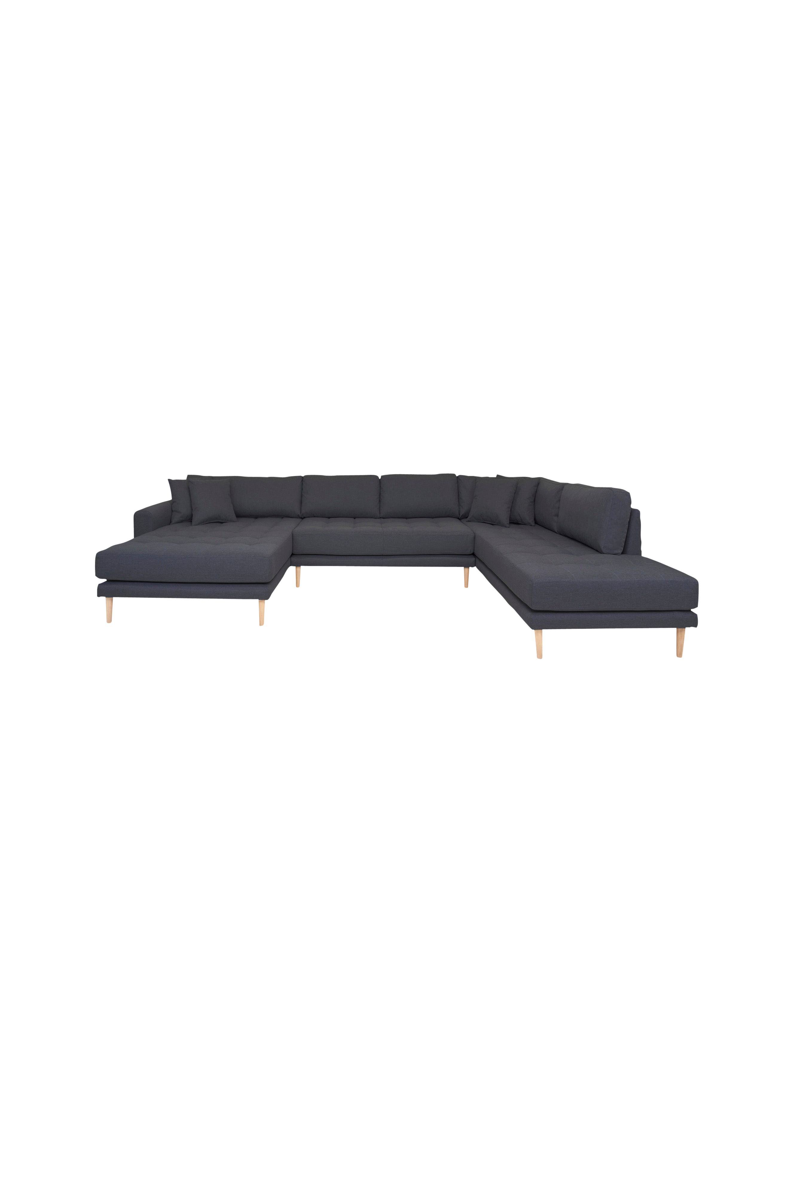 U-soffa med open-end i 100% polyester med ben av trä, omonterad. 220x370x78. 116,9 kg