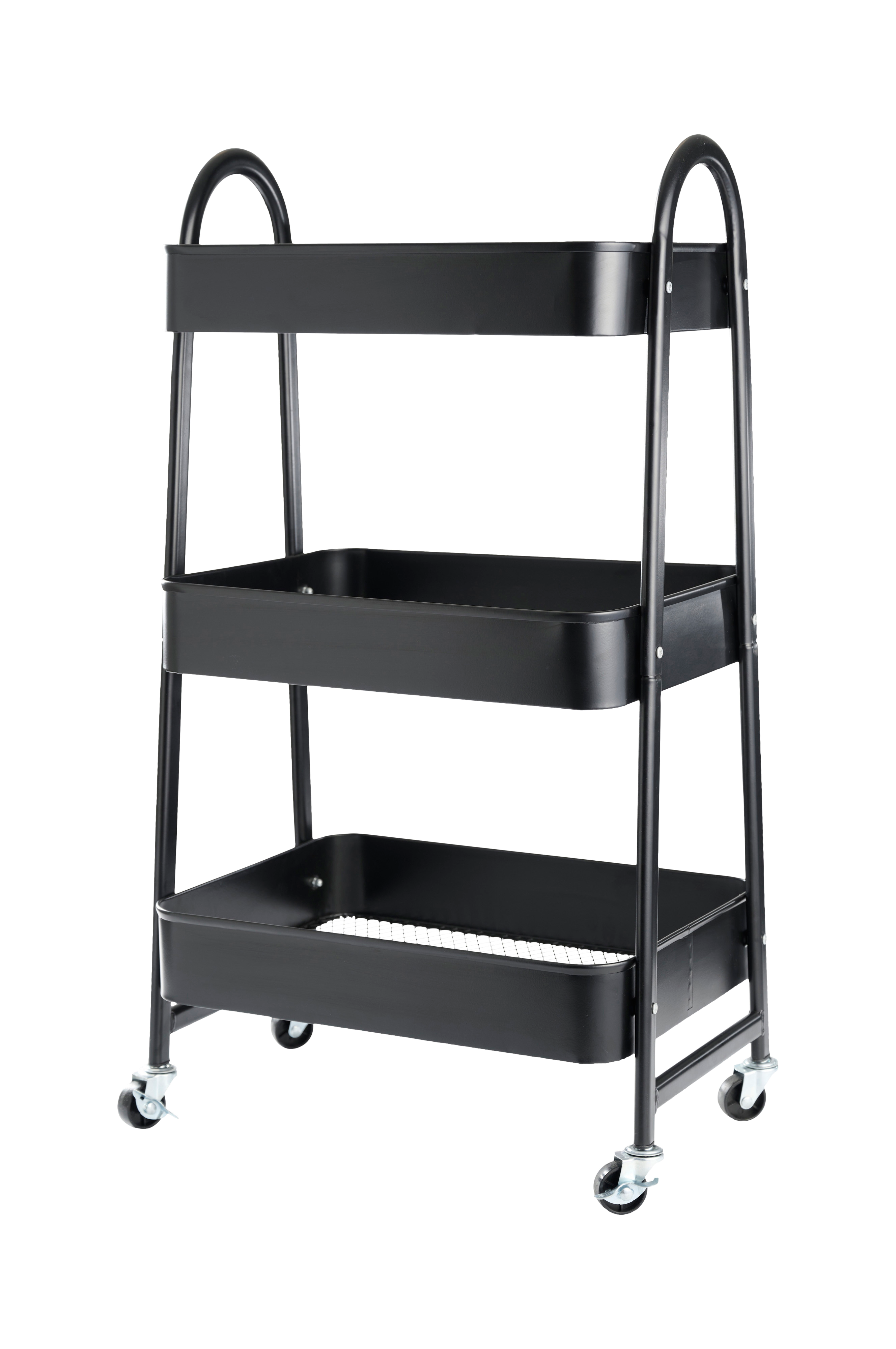 Vagn med tre hyllplan och smal design som gör den lättare att förflytta. Hyllorna med nätbotten håller dina saker säkra. Vagnen har en perfekt storlek för förvaring i till exempel badrummet.