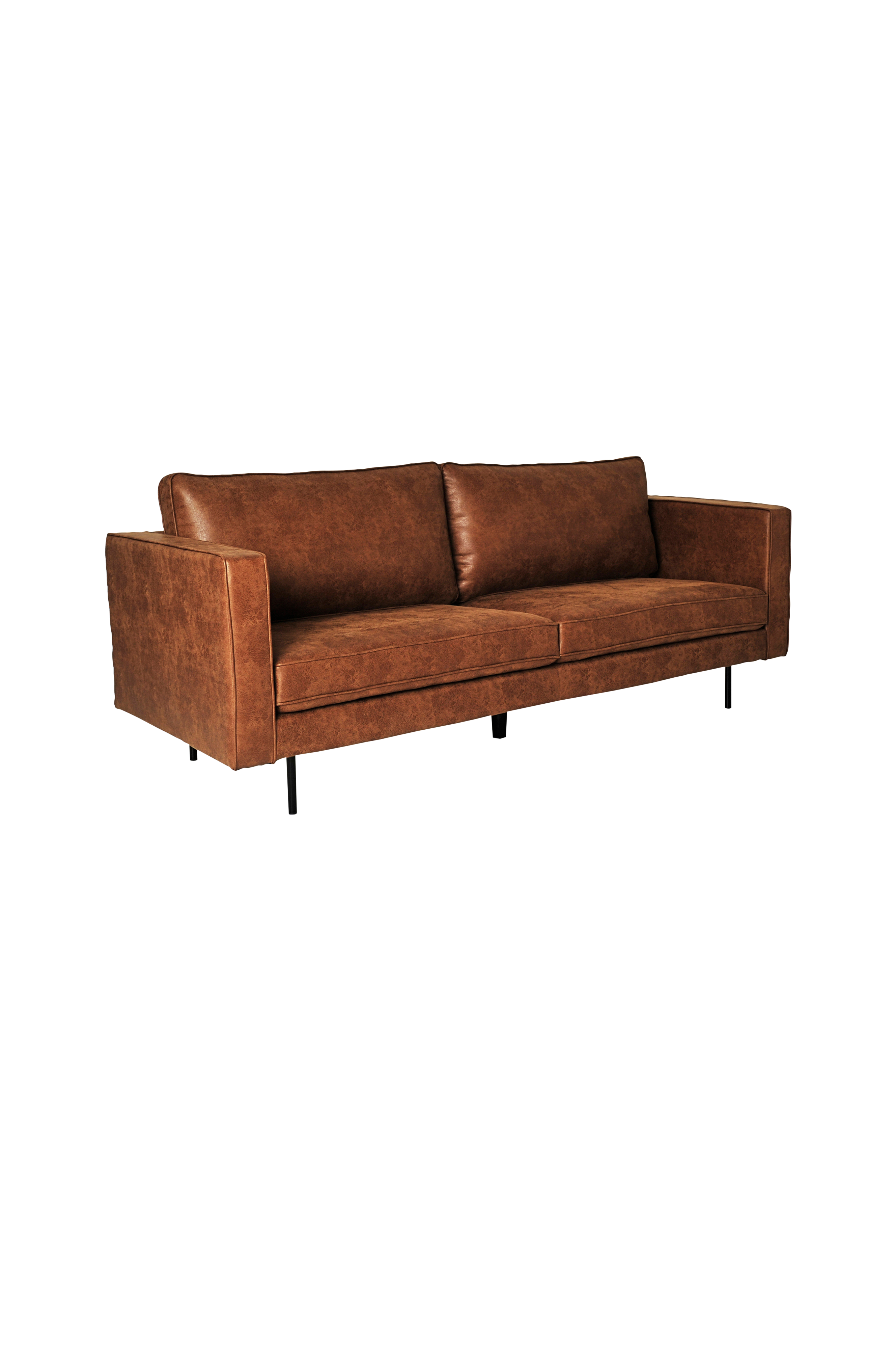 Soffa i ett snyggt Microfibertyg. Löstagbara ryggdynor med polyesterfiberstoppning. Ryggdynor kan sättas fast om man vill med en dragkedja. Foam i sits. Metallben.