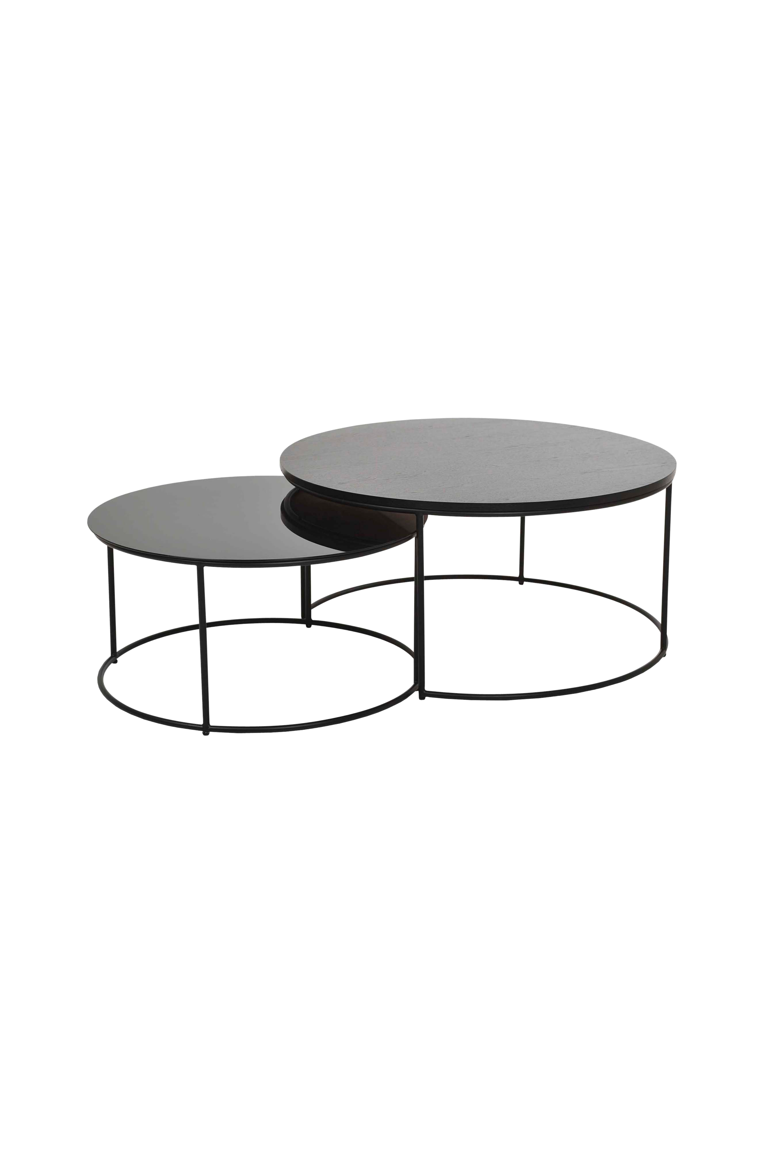 Topp i lackad mdf/askfaner/ glas. Svartlackerat metallunderrede.
