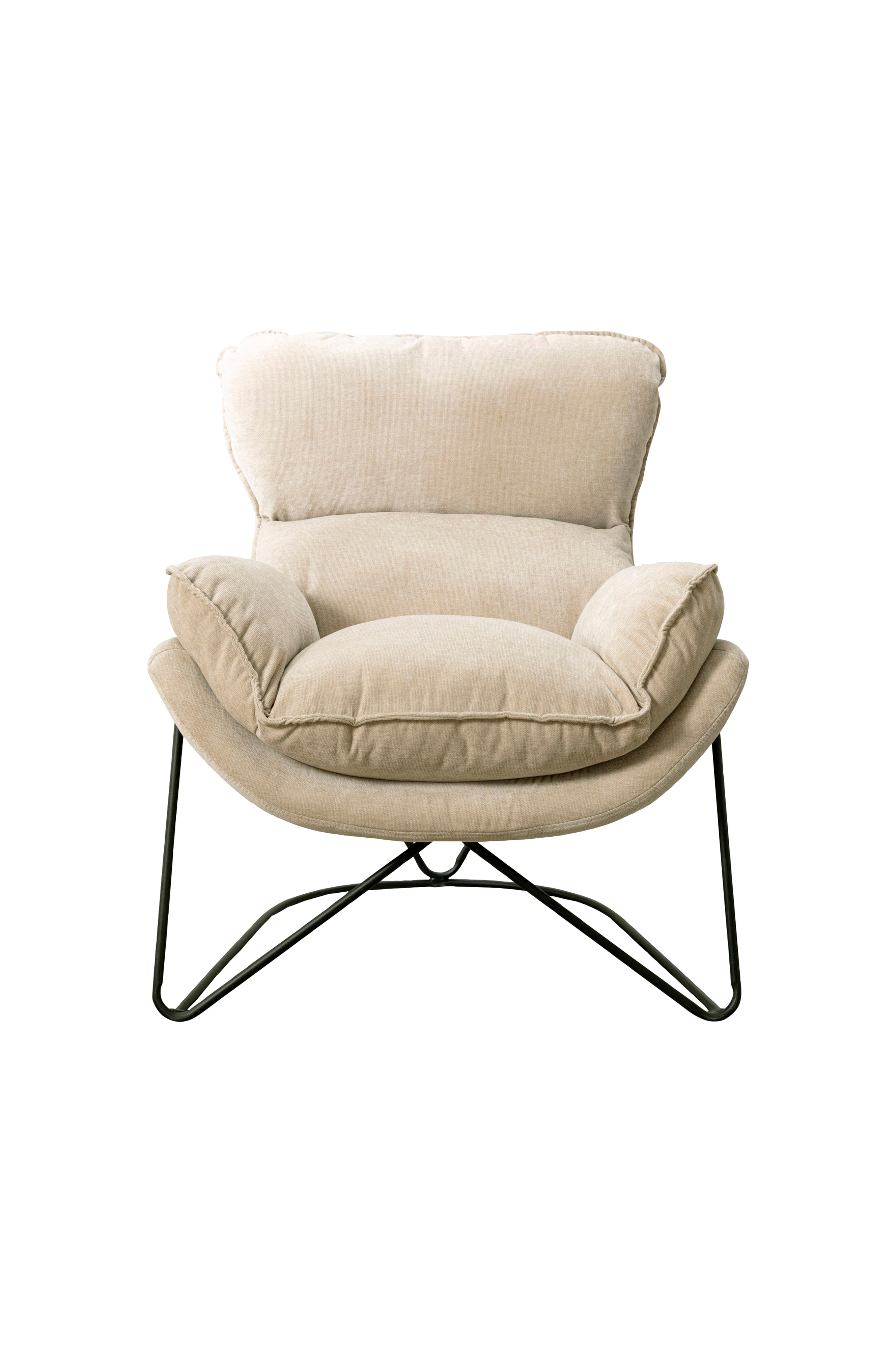 Fåtölj i tyg med lackat metallunderrede.