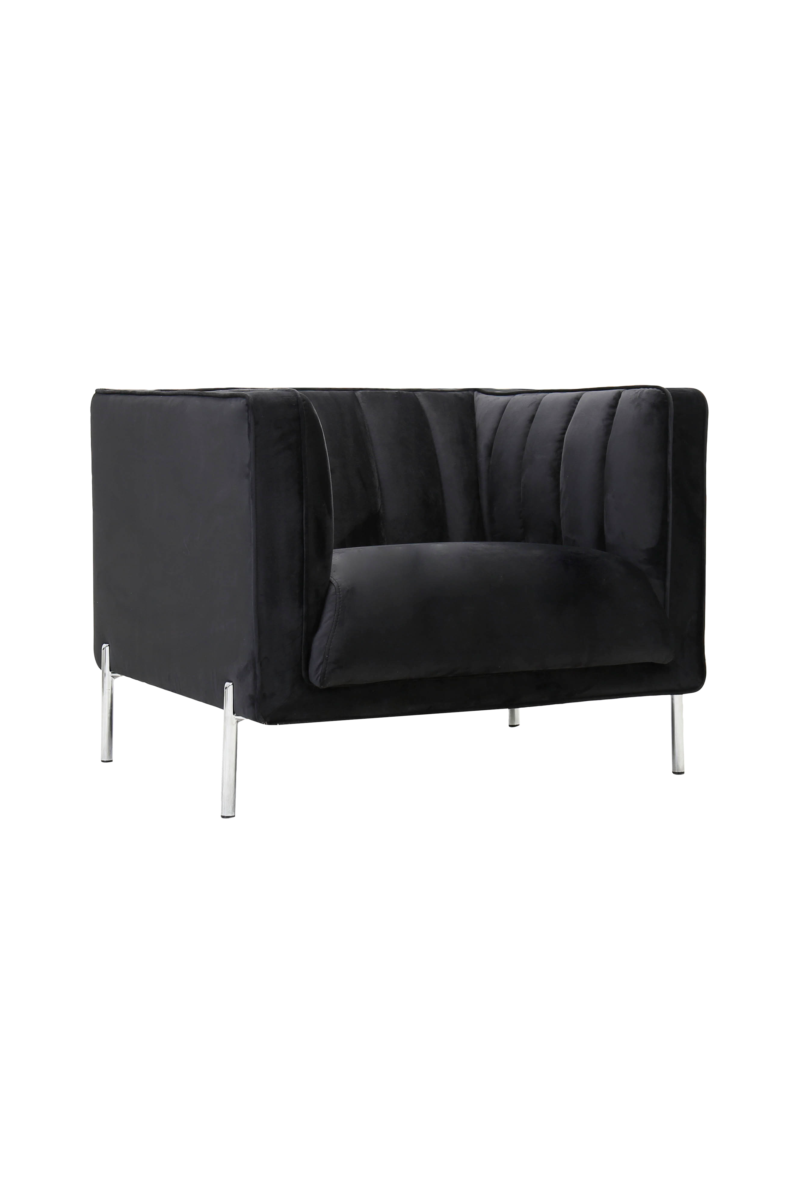 Stilren Fåtölj i slitstark sammet med kromade ben.