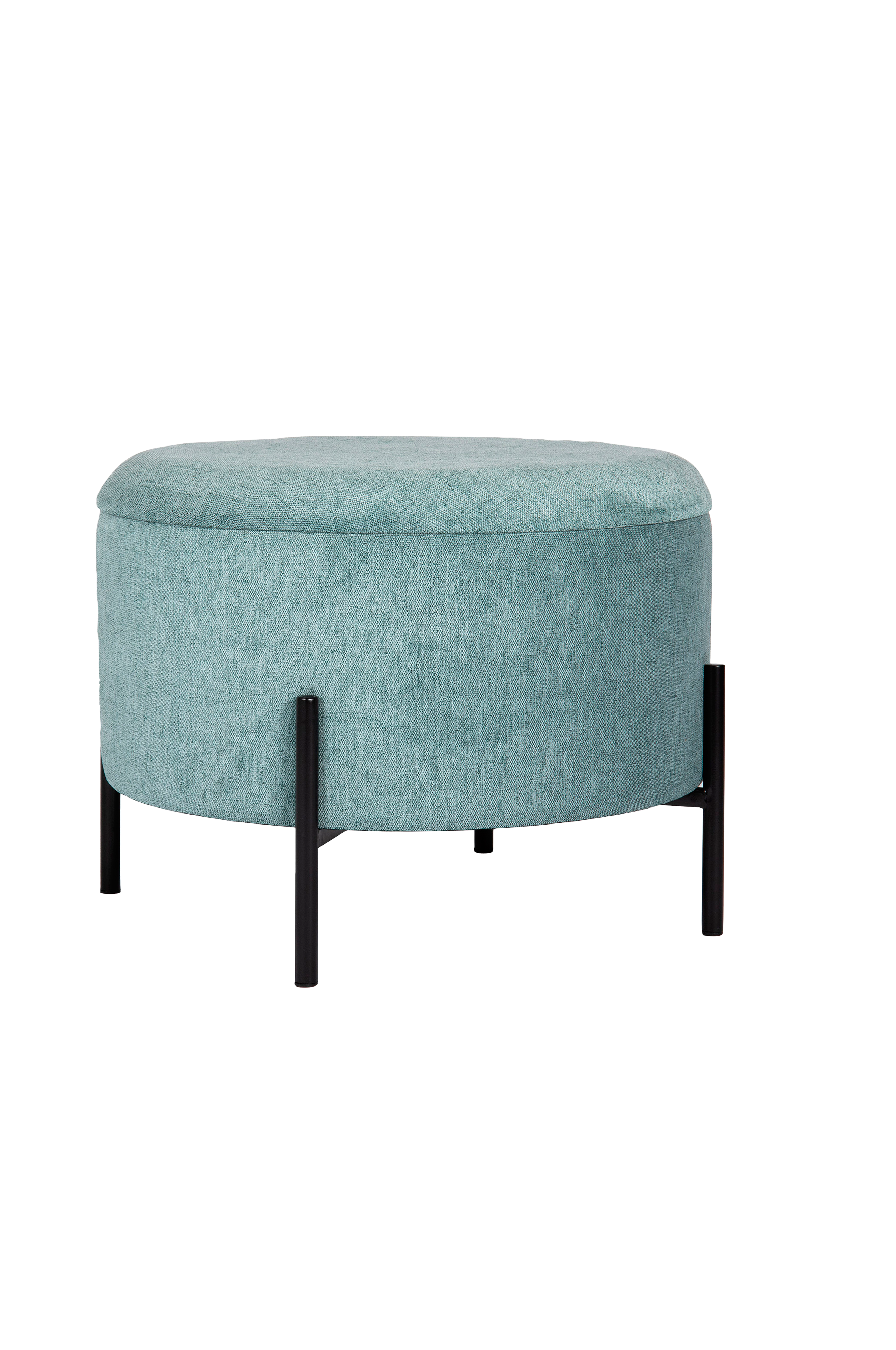 Sittpuff med förvaring. 100 % polyestertyg. Metallben.